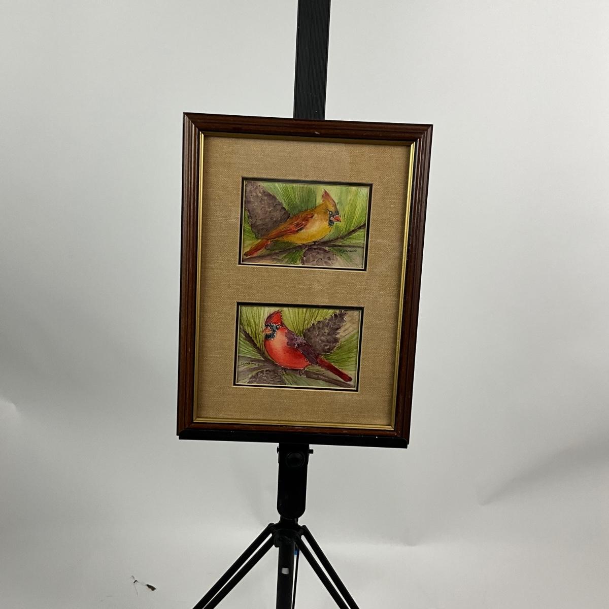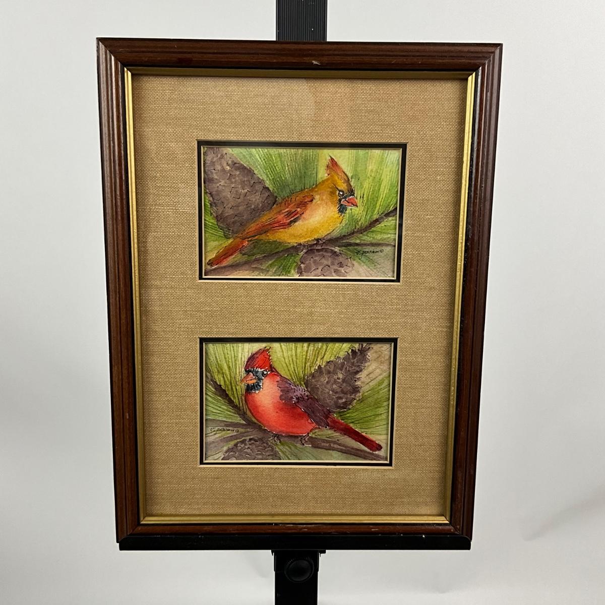 942 Original Watercolor "Cardinals" by Virginia Perram