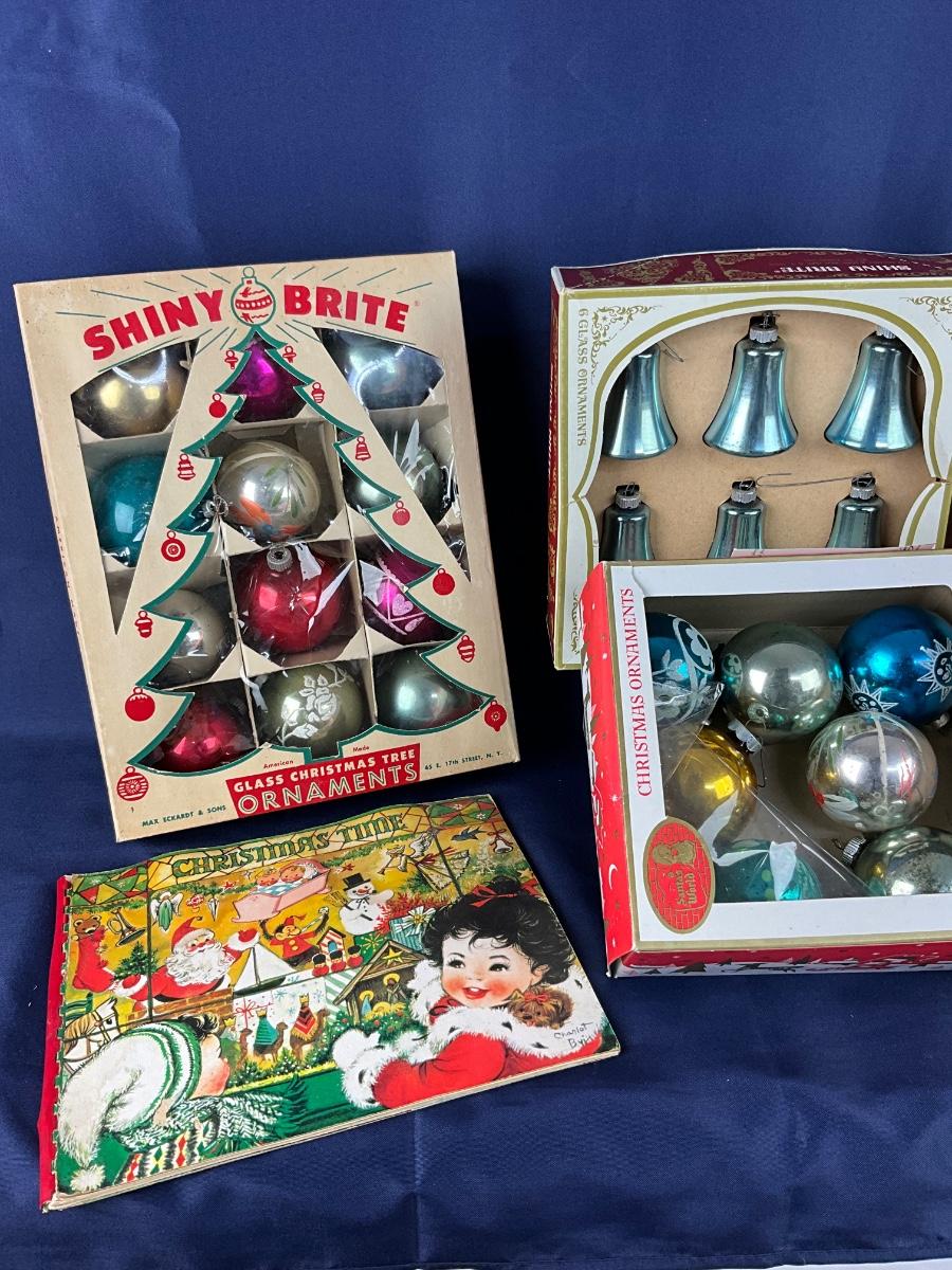942 Vintage Shiny Brite Christmas Ornaments 3 boxes