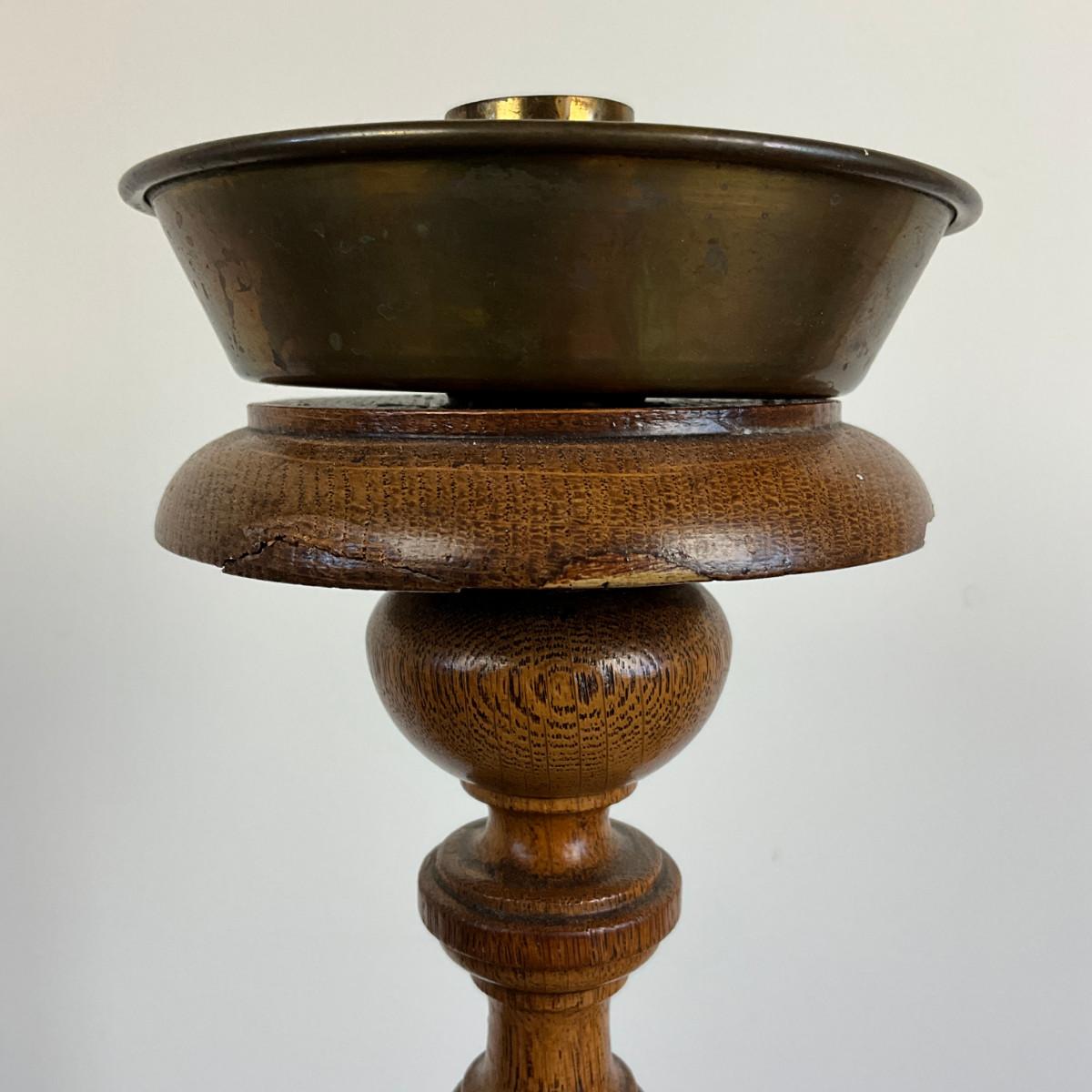 945 Antique Large Hand-Carved Wooden Candlestick