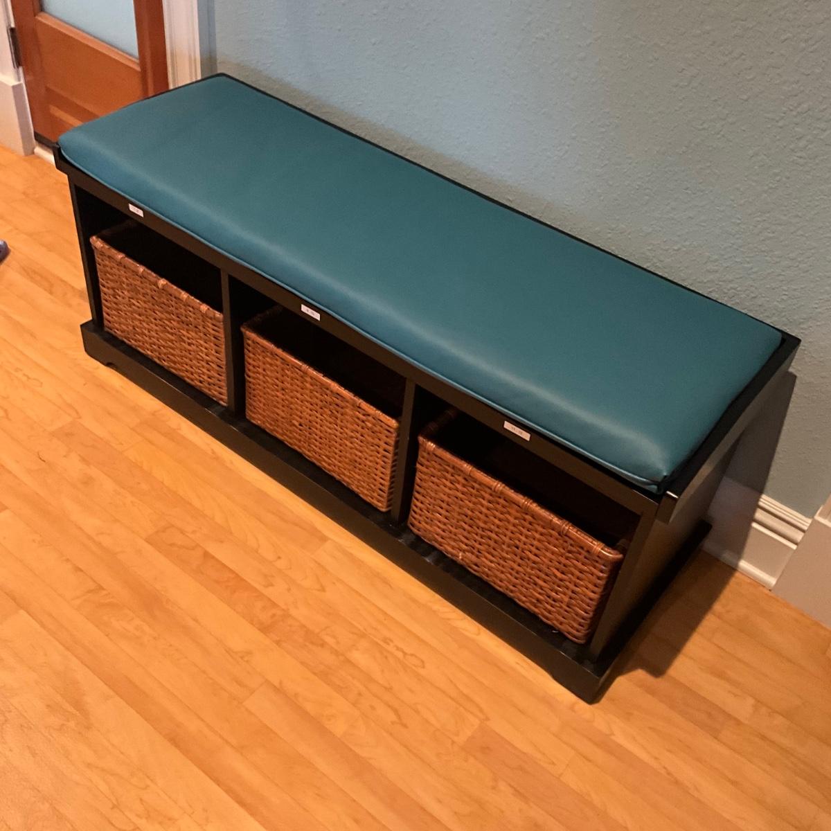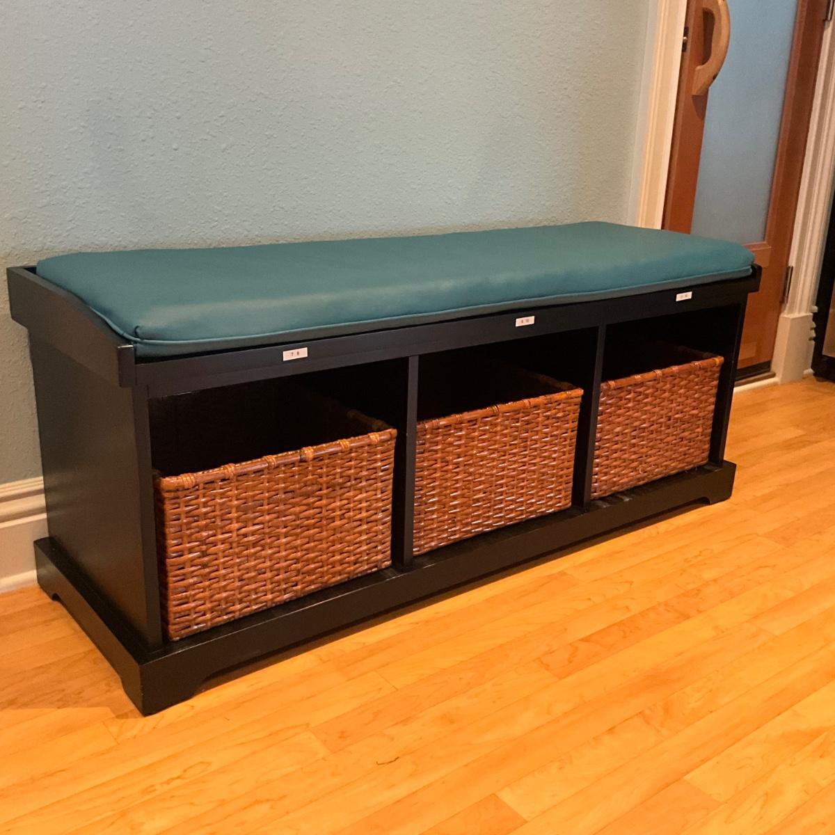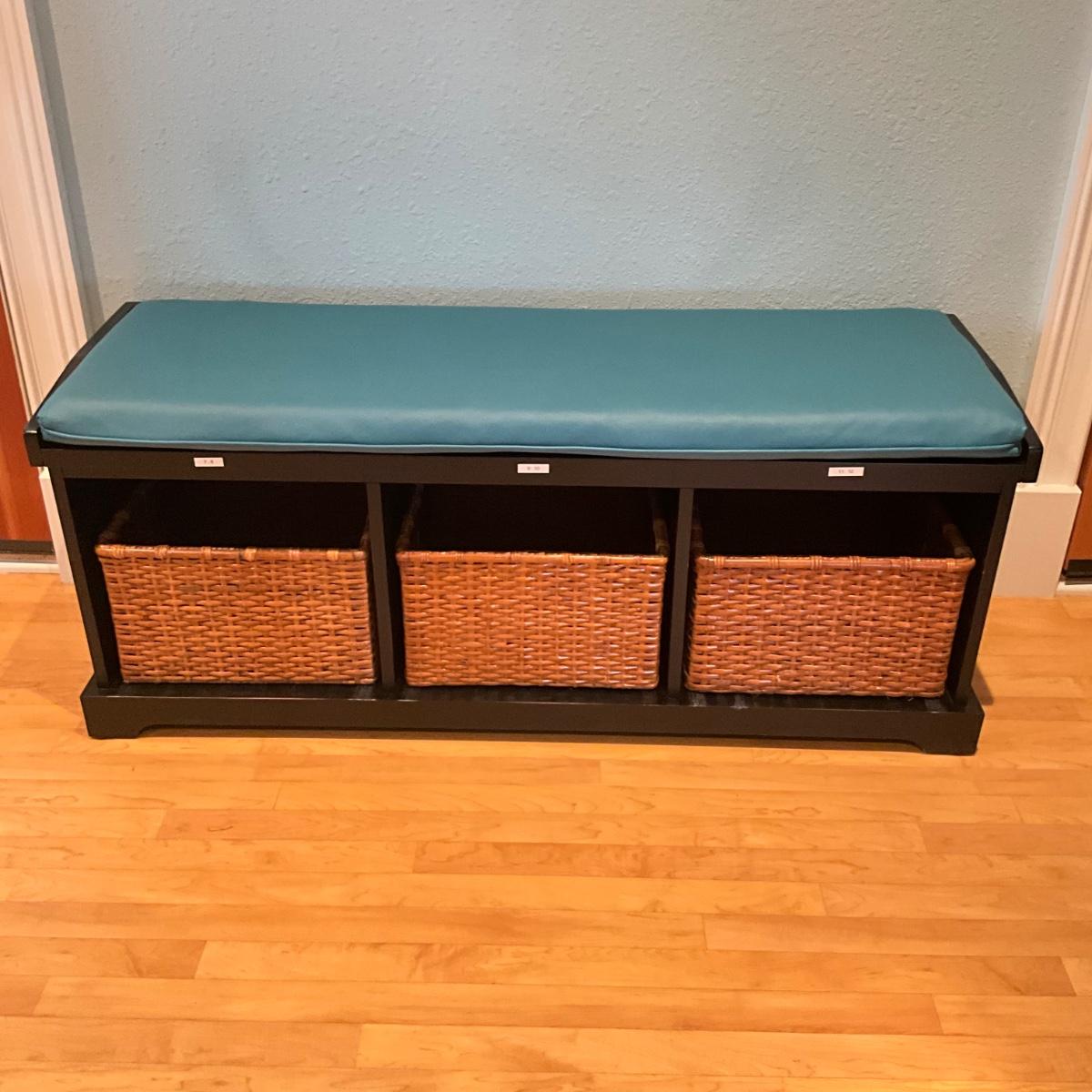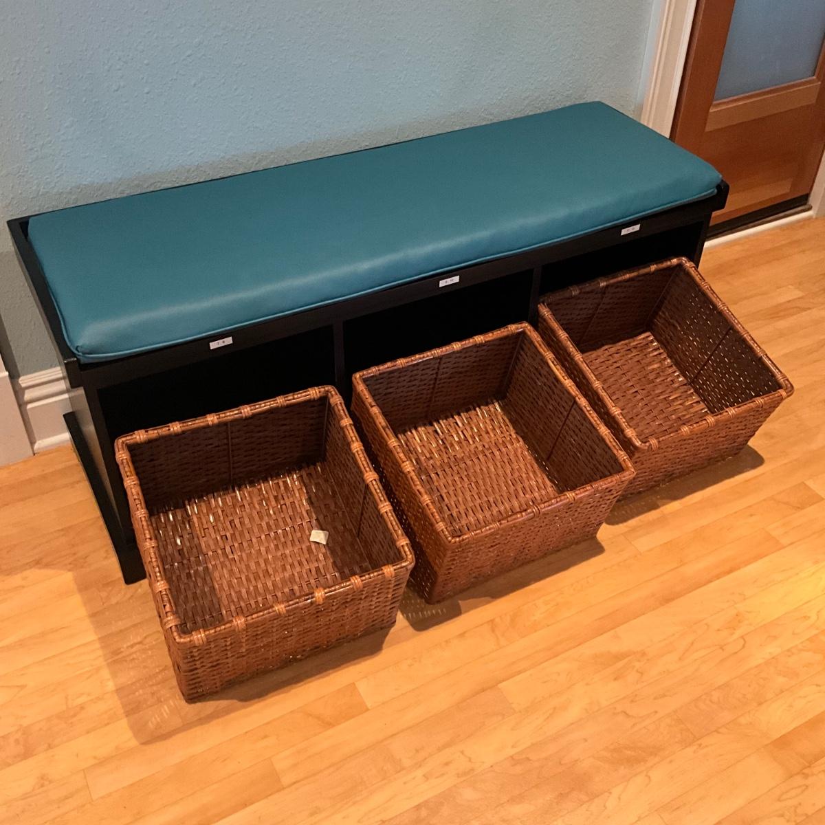 946 Pottery Barn Bench with Three Baskets and Cushion
