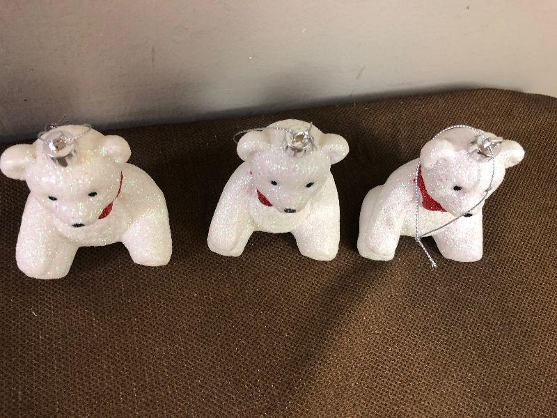 #95 3 White Bears for tree décor