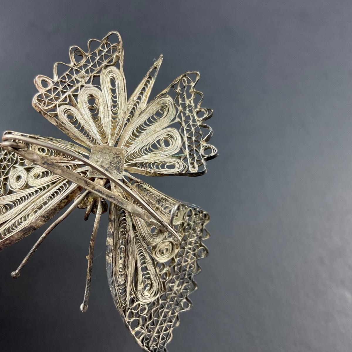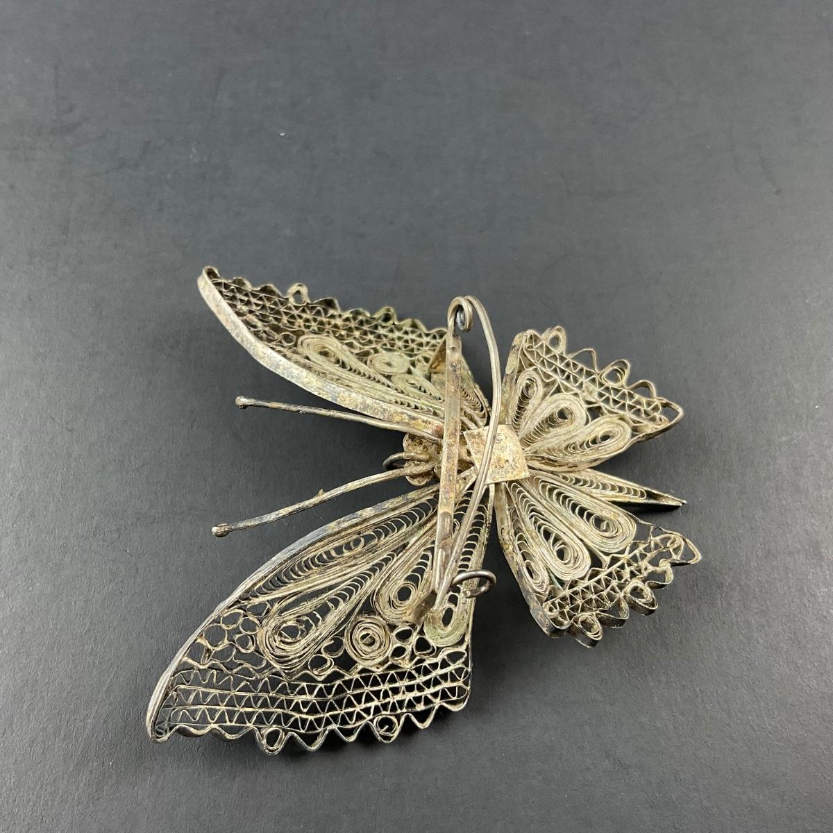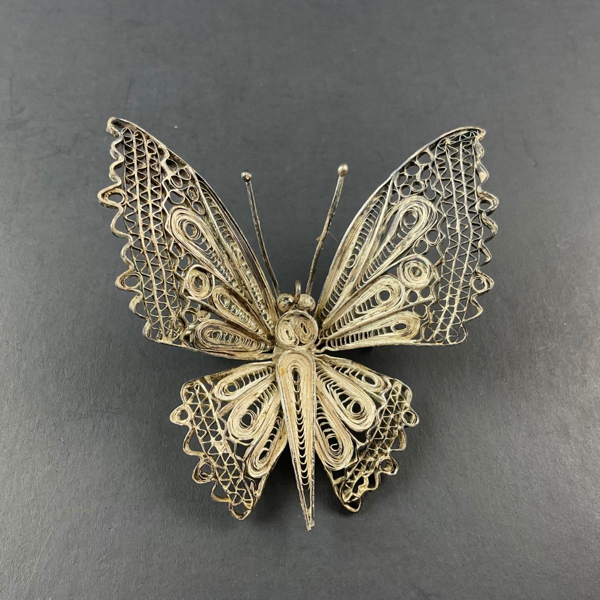 Two vintage butterfly pins, one is marked 925 the other is not marked but has mother of pearl like accents on it. Please see photos for details and condition. Any condition statement is given as a courtesy to a client, is an opinion, and should not be treated as a statement of fact. Reference to condition written, oral or within a condition report shall not be regarded as a full account of condition and may not include all defects, alterations, or restorations. Absence of a condition report does not imply a lot is flawless or lacking imperfections or damage. Katherine’s Auction & Appraisal Service shall have no responsibility for any error or omission. Returns shall not be accepted on the basis of condition. ::: Shipping is available on this lot. If you require shipping you must let us know at the close of the auction. We will coordinate with you after the item has been won. Shipping fees will include insurance up to or exceeding the value of all items being mailed. If you have any questions regarding this lot please contact the auctioneer either via this website, by direct email or by phone. PICK UP TIMES and other important information can be found in the TERMS and DESCRIPTION of the auction. Please take a look for pertinent information. Thanks!