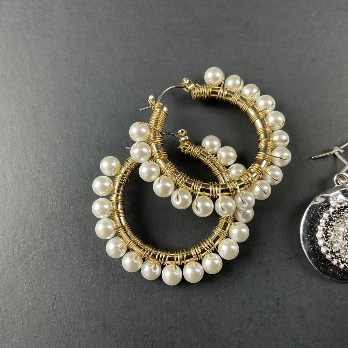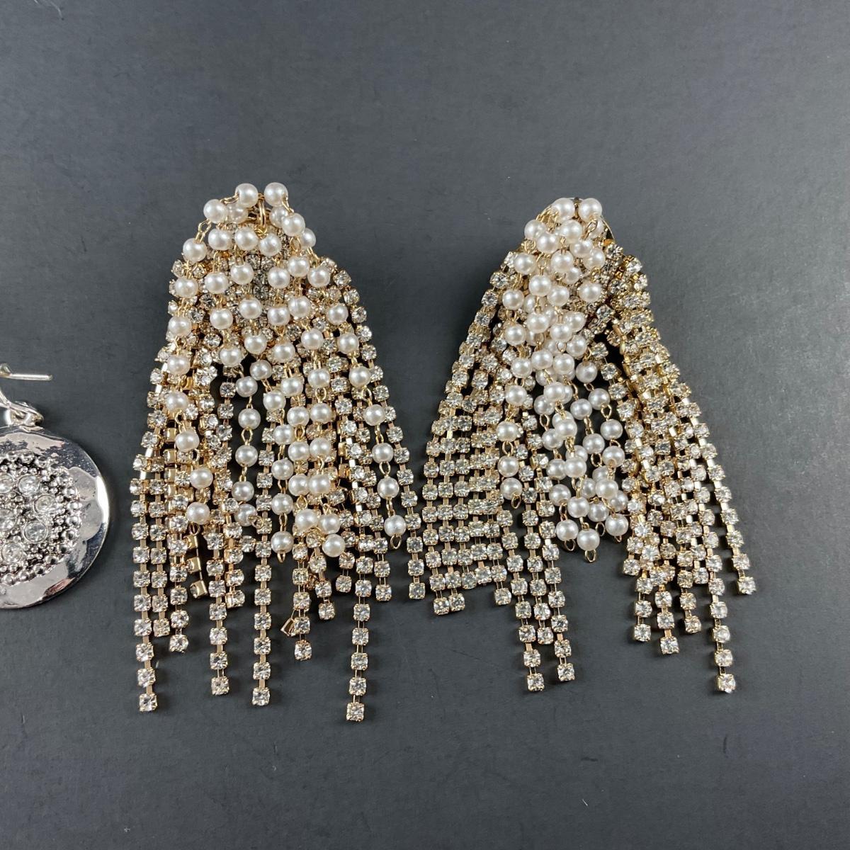 Five pairs of miscellaneous assorted earrings. Please see photos for details and condition. Any condition statement is given as a courtesy to a client, is an opinion, and should not be treated as a statement of fact. Reference to condition written, oral or within a condition report shall not be regarded as a full account of condition and may not include all defects, alterations, or restorations. Absence of a condition report does not imply a lot is flawless or lacking imperfections or damage. Katherine’s Auction & Appraisal Service shall have no responsibility for any error or omission. Returns shall not be accepted on the basis of condition. ::: Shipping is available on this lot. If you require shipping you must let us know at the close of the auction. We will coordinate with you after the item has been won. Shipping fees will include insurance up to or exceeding the value of all items being mailed. If you have any questions regarding this lot please contact the auctioneer either via this website, by direct email or by phone. PICK UP TIMES and other important information can be found in the TERMS and DESCRIPTION of the auction. Please take a look for pertinent information. Thanks!