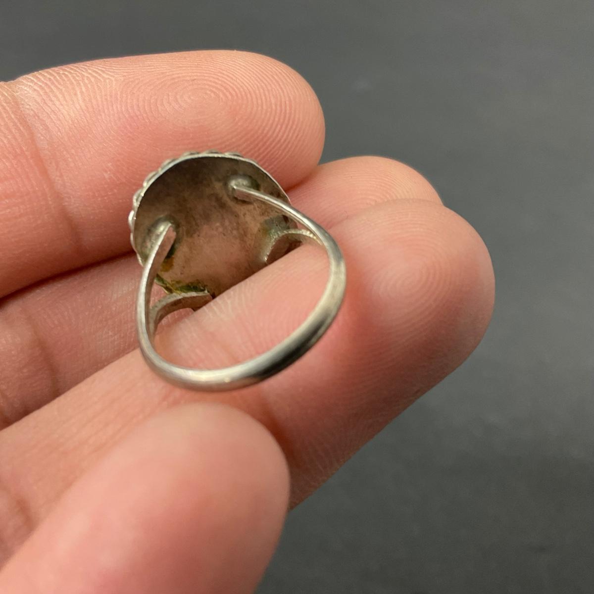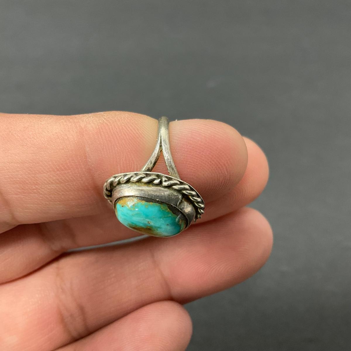 One small polished blue stone ring. This ring is very small and a size . Please see photos for details and condition. Any condition statement is given as a courtesy to a client, is an opinion, and should not be treated as a statement of fact. Reference to condition written, oral or within a condition report shall not be regarded as a full account of condition and may not include all defects, alterations, or restorations. Absence of a condition report does not imply a lot is flawless or lacking imperfections or damage. Katherine’s Auction & Appraisal Service shall have no responsibility for any error or omission. Returns shall not be accepted on the basis of condition. ::: Shipping is available on this lot. If you require shipping you must let us know at the close of the auction. We will coordinate with you after the item has been won. Shipping fees will include insurance up to or exceeding the value of all items being mailed. If you have any questions regarding this lot please contact the auctioneer either via this website, by direct email or by phone. PICK UP TIMES and other important information can be found in the TERMS and DESCRIPTION of the auction. Please take a look for pertinent information. Thanks!