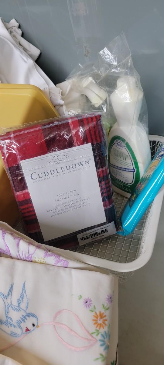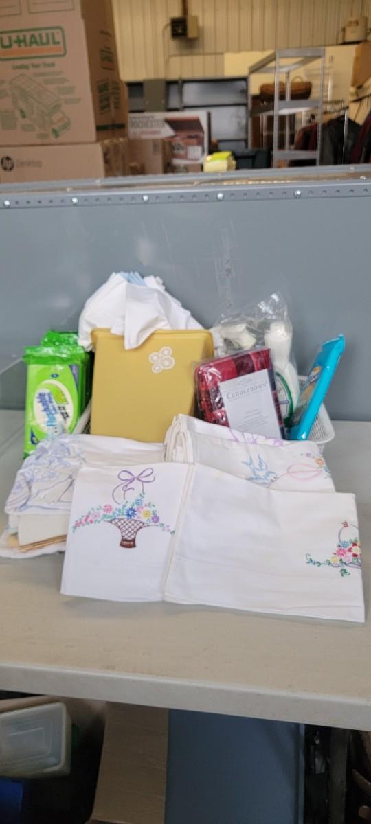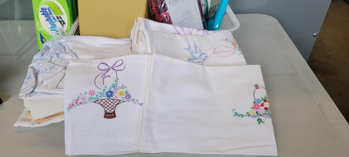 Pillowcases some embroidered, wastebasket and more