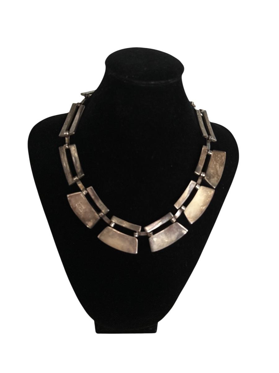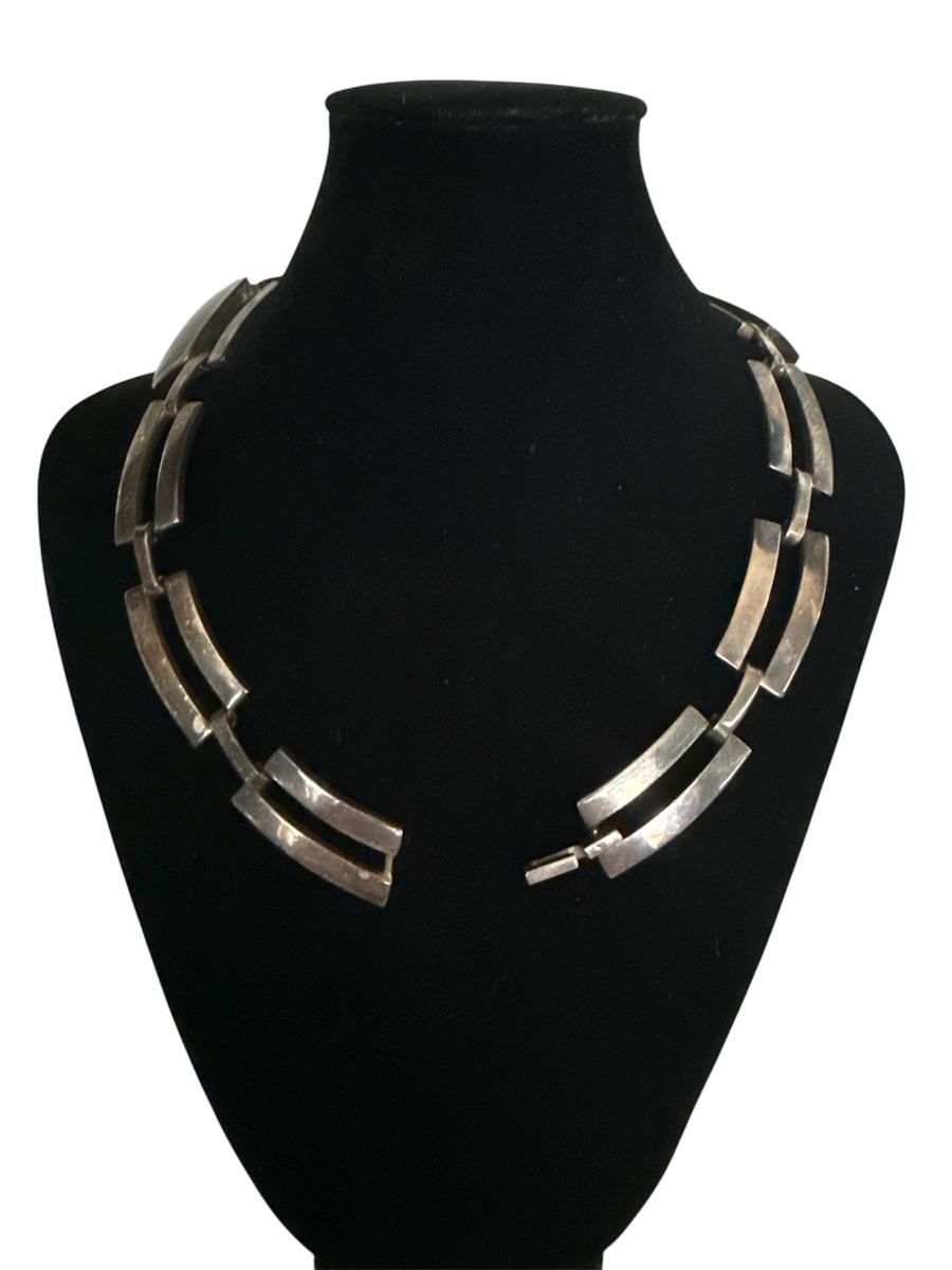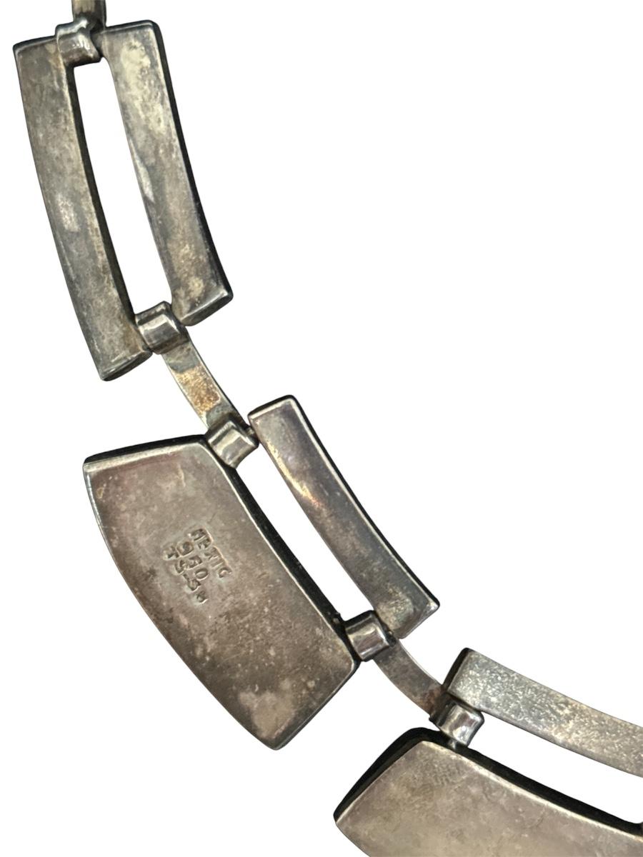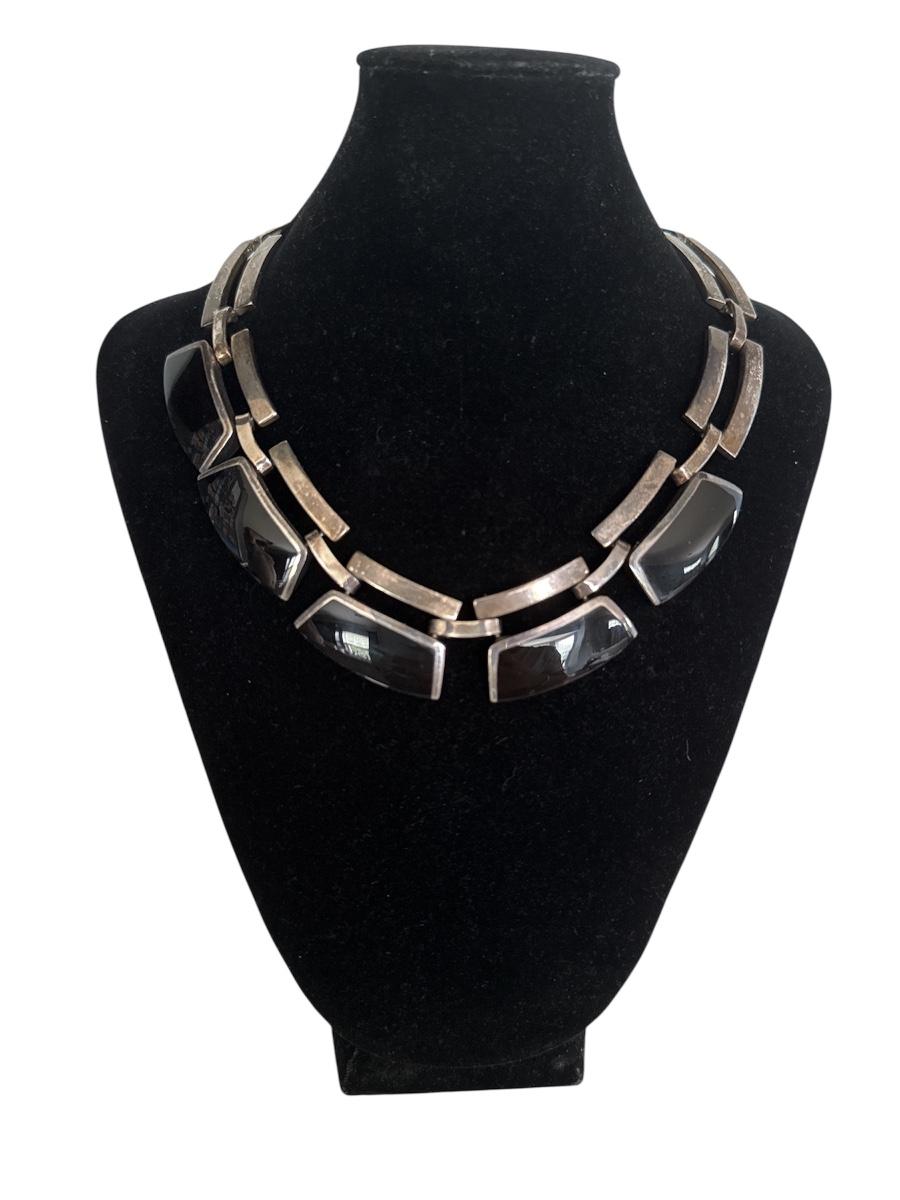 Taxco Mexico Sterling Silver Onyx Modernist Statement Necklace 157G