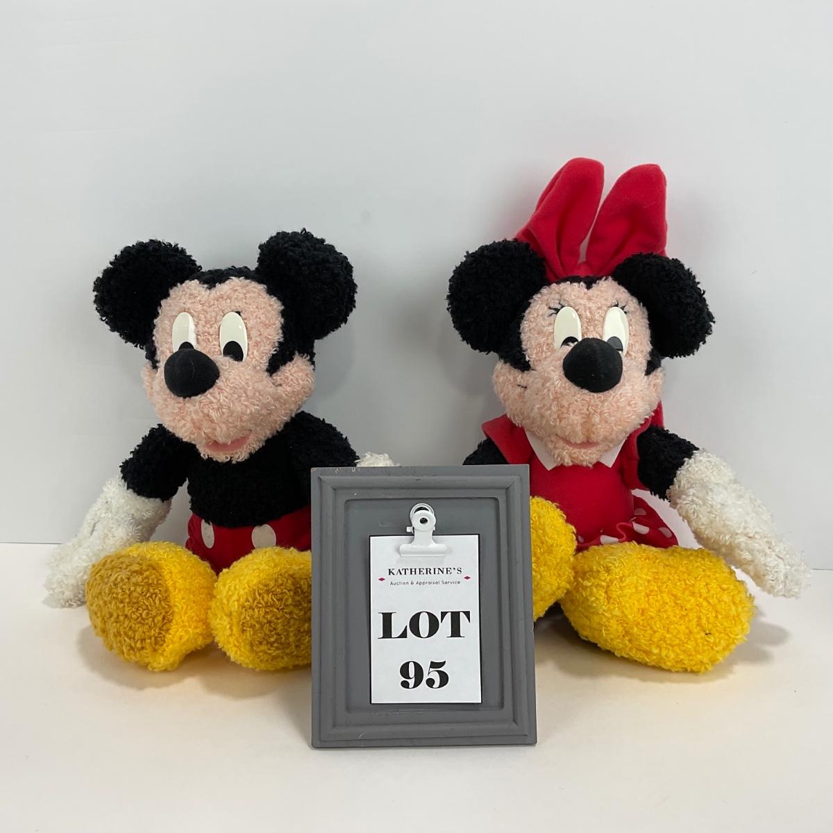 Two stuffed animal Mattel Mickey and Minnie Stuffed animals. Each is 15 1/2 inches tall both appear to be in great shape. Please see photos for details and condition. Any condition statement is given as a courtesy to a client, is an opinion, and should not be treated as a statement of fact. Reference to condition written, oral or within a condition report shall not be regarded as a full account of condition and may not include all defects, alterations, or restorations. Absence of a condition report does not imply a lot is flawless or lacking imperfections or damage. Katherine’s Auction & Appraisal Service shall have no responsibility for any error or omission. Returns shall not be accepted on the basis of condition. ::: Shipping is available on this lot. If you require shipping you must let us know at the close of the auction. We will coordinate with you after the item has been won. Shipping fees will include insurance up to or exceeding the value of all items being mailed. If you have any questions regarding this lot please contact the auctioneer either via this website, by direct email or by phone. PICK UP TIMES and other important information can be found in the TERMS and DESCRIPTION of the auction. Please take a look for pertinent information. Thanks!