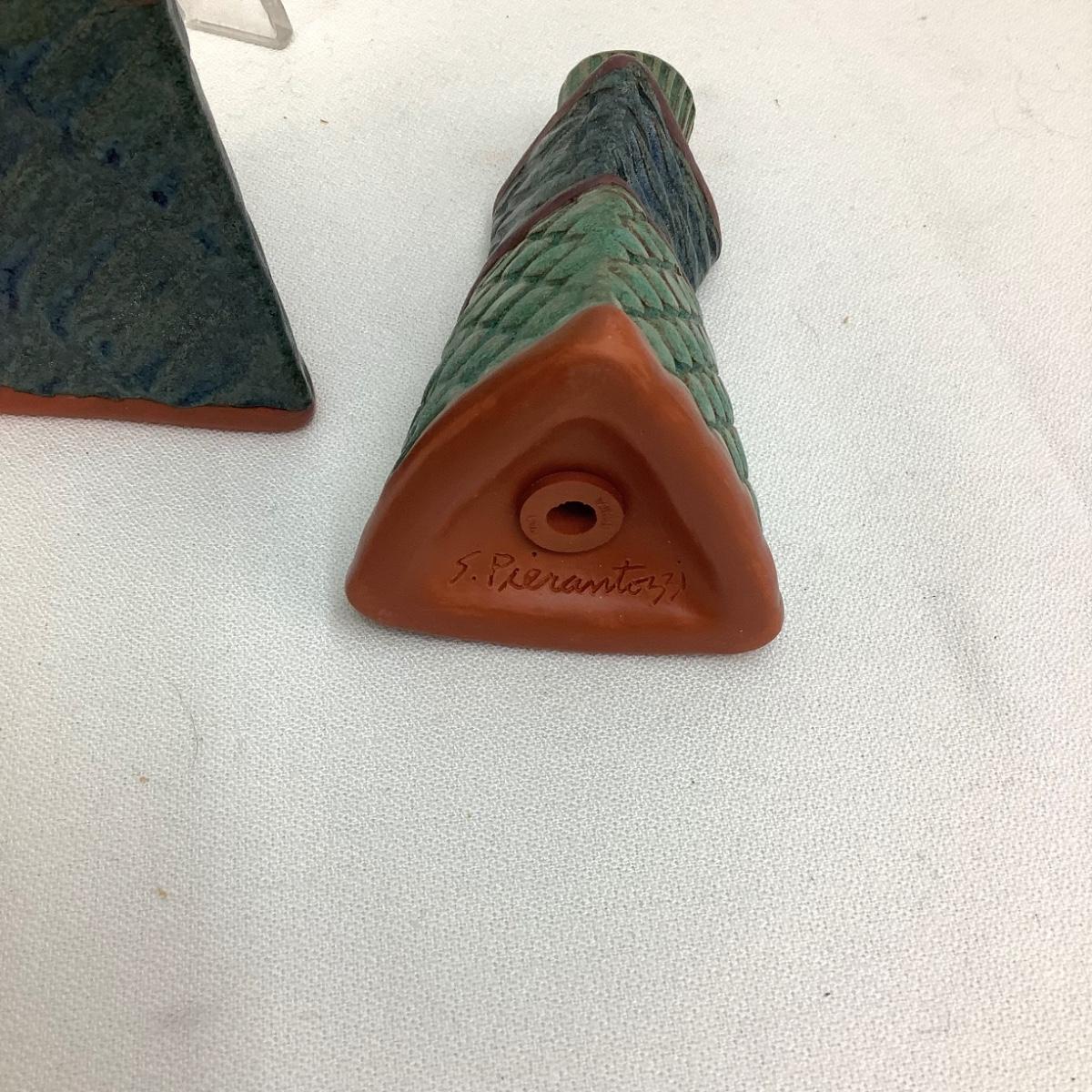 The salt and pepper shakers are signed S.Pierantezzi and 4" tall, the bowl is 9.75" in diameter and 2" high.