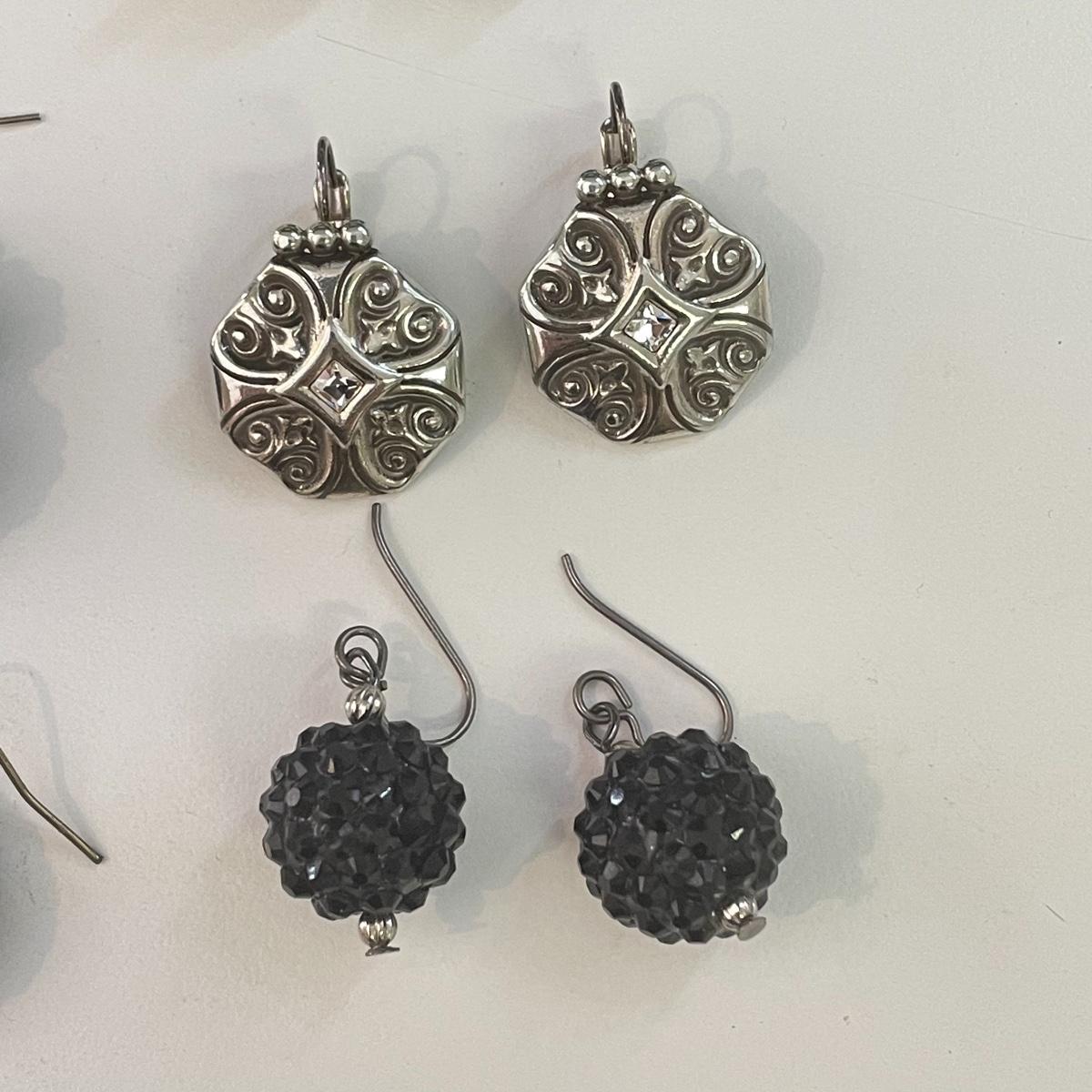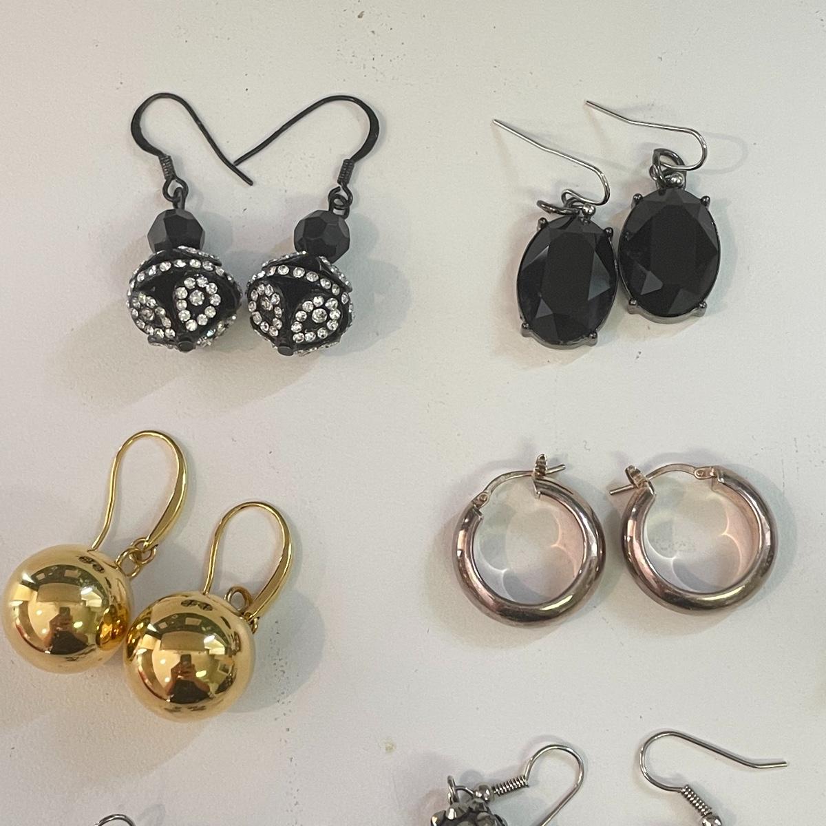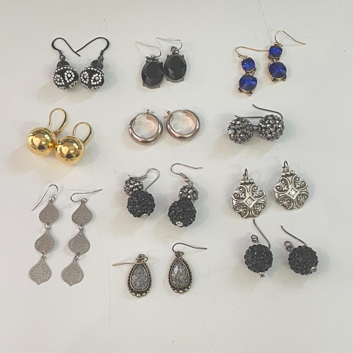 Eleven pairs of elegant and everyday earrings. The posted hoop earrings are marked 950, Milan and Italy. The rest of the earrings appear unmarked. Shipping available.
