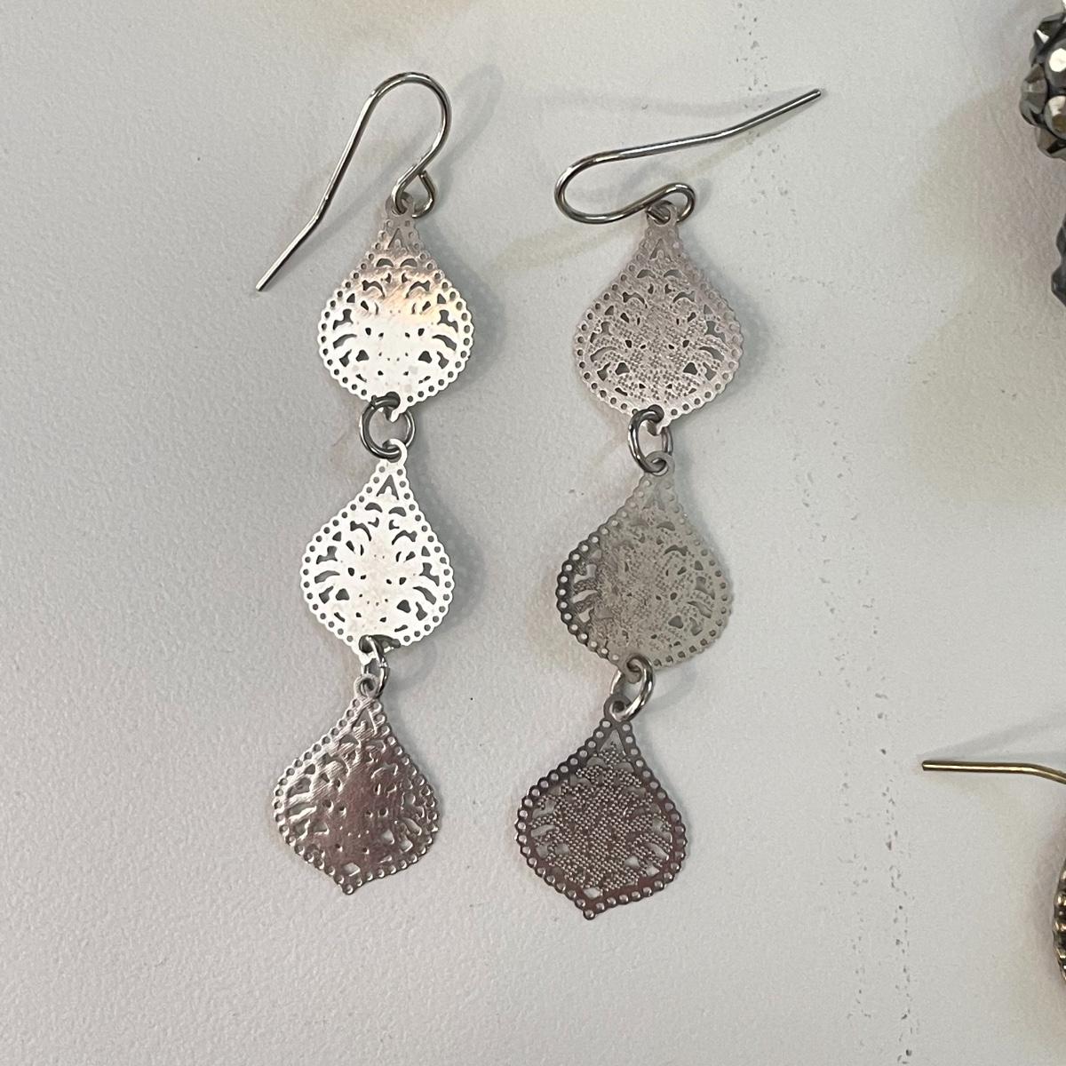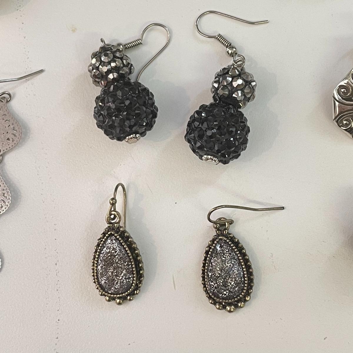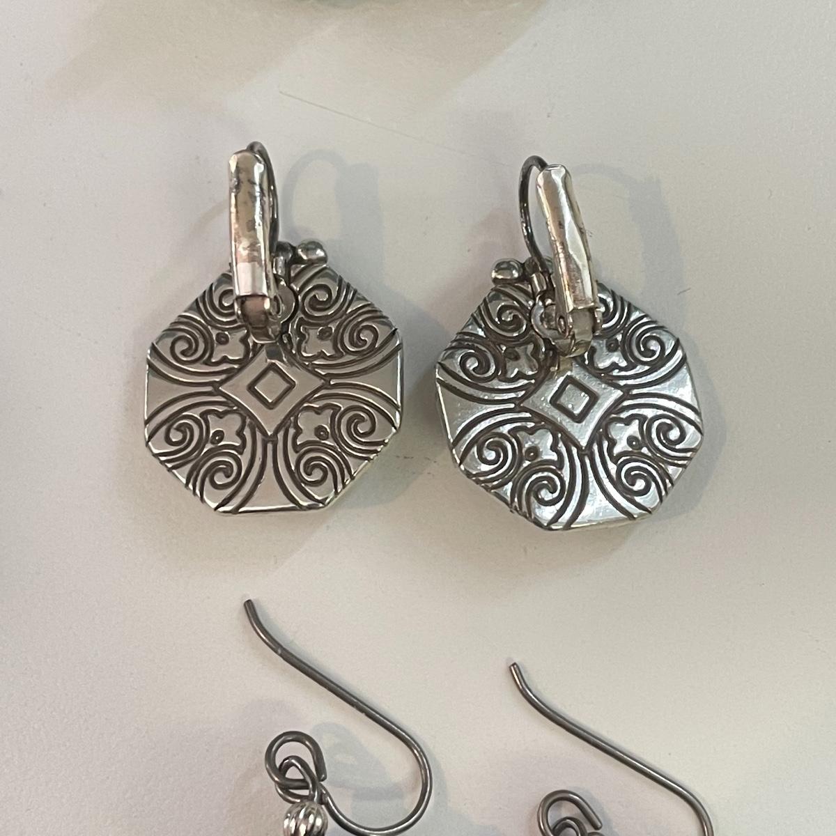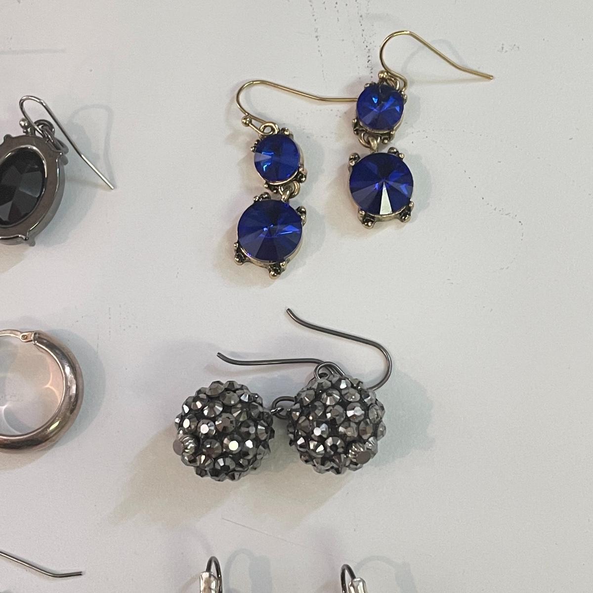 Eleven pairs of elegant and everyday earrings. The posted hoop earrings are marked 950, Milan and Italy. The rest of the earrings appear unmarked. Shipping available.
