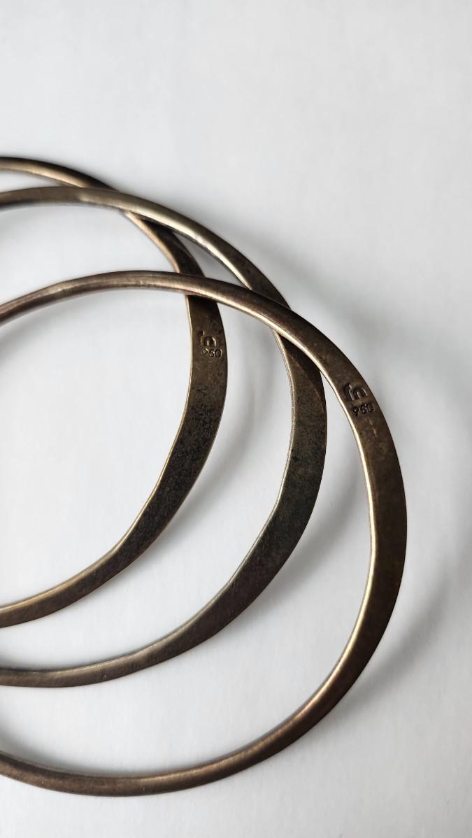 3 lovely sterling bracelets with a rich patina. These bracelets have a slight wave shape.