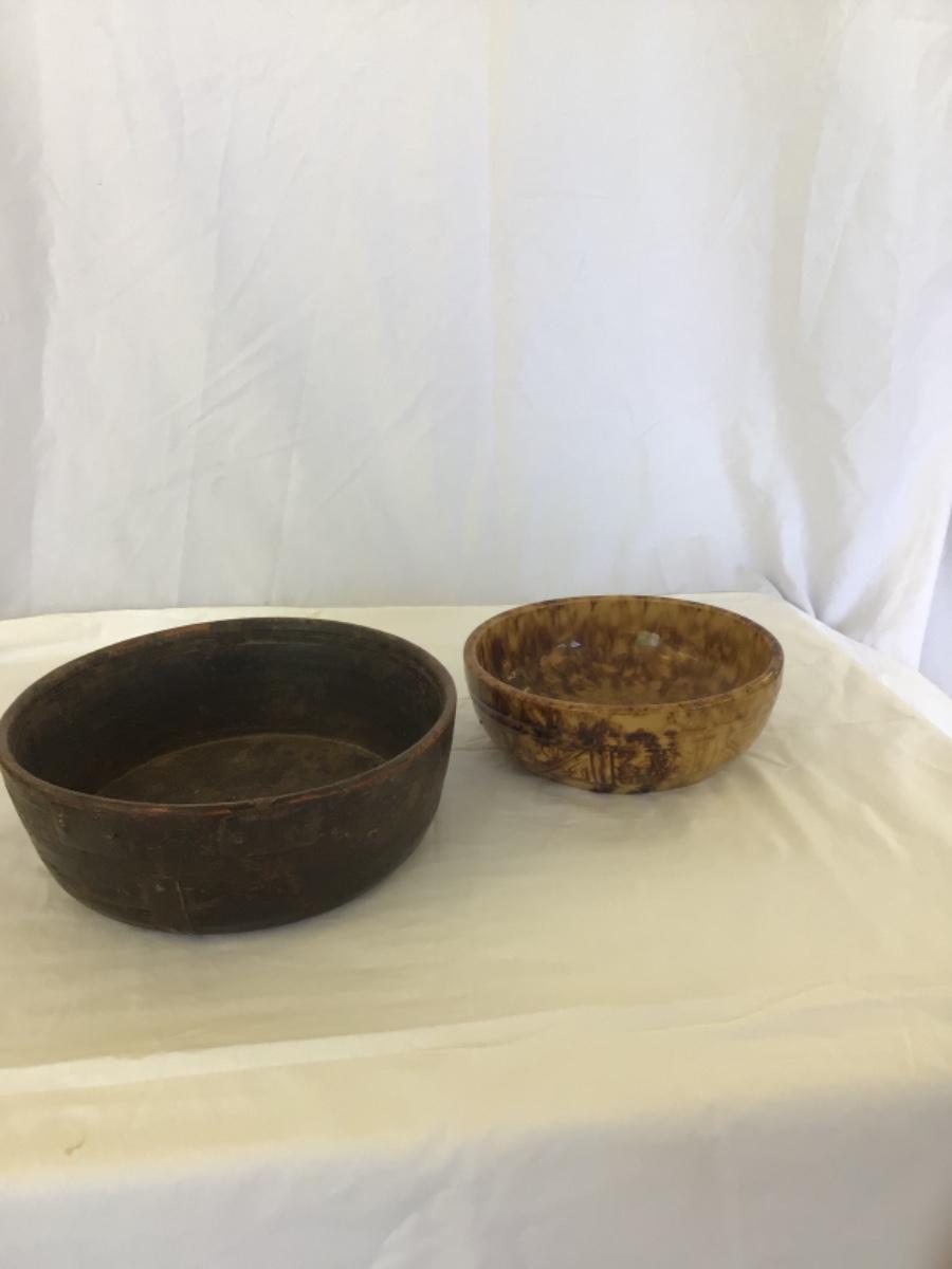 950-Early Yelloware Sponge Bowl & Early Wooden Bowl