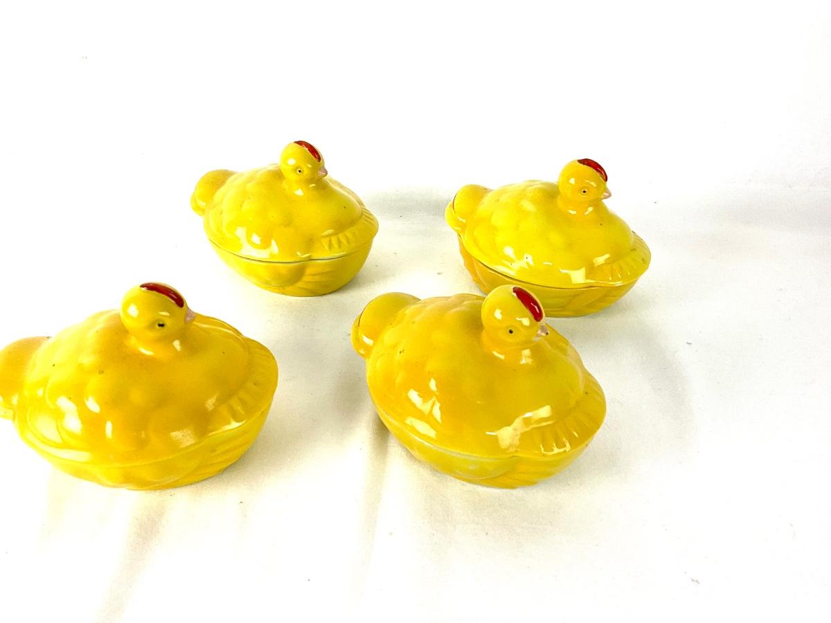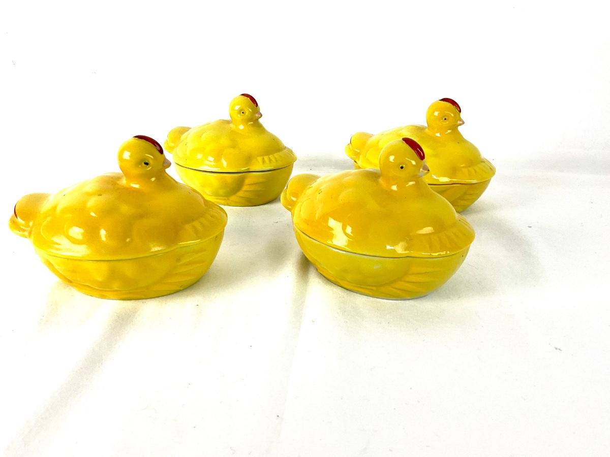 952 Set of 4 Vintage Porcelain Hens on a Nest Covered Dish