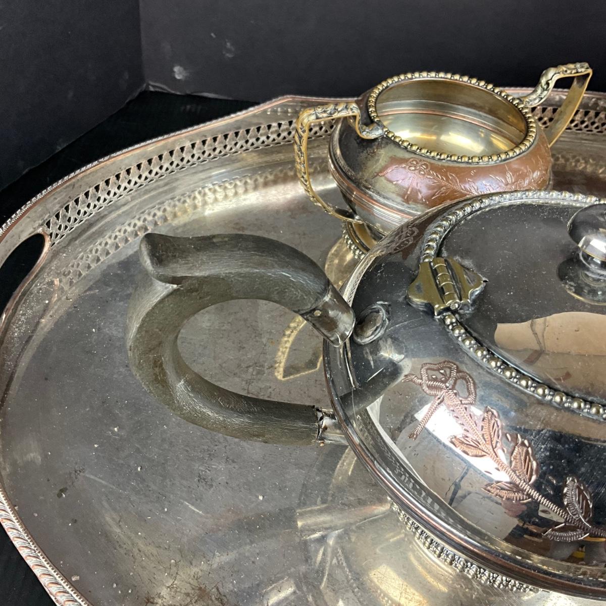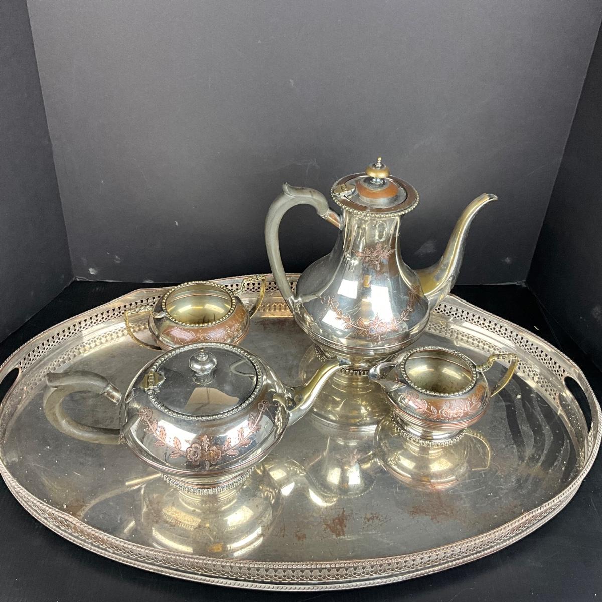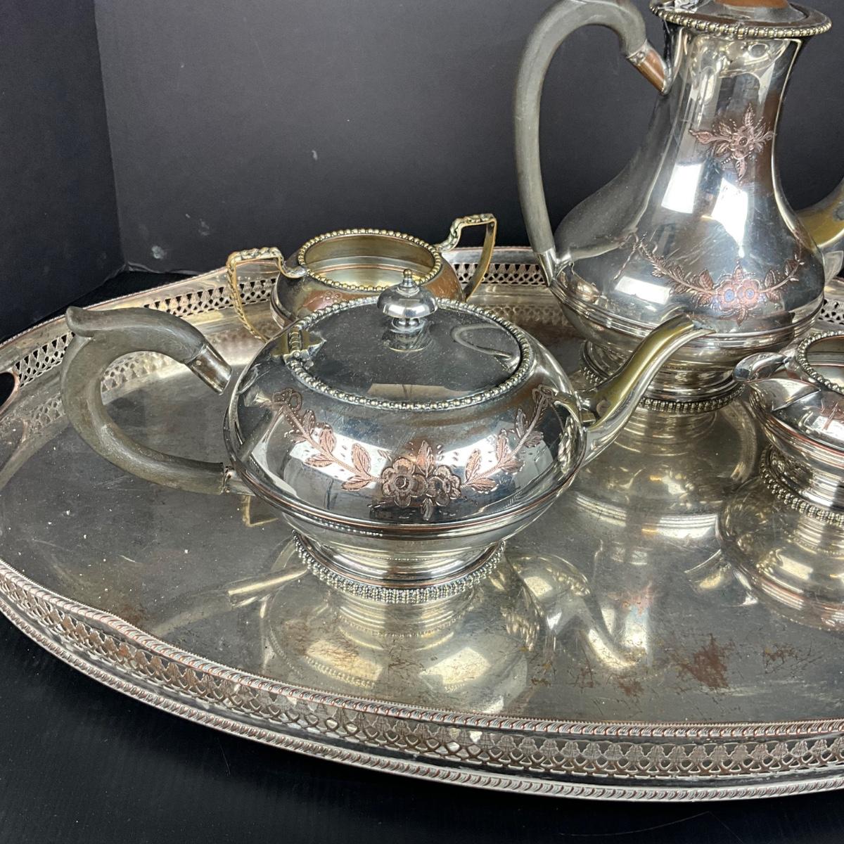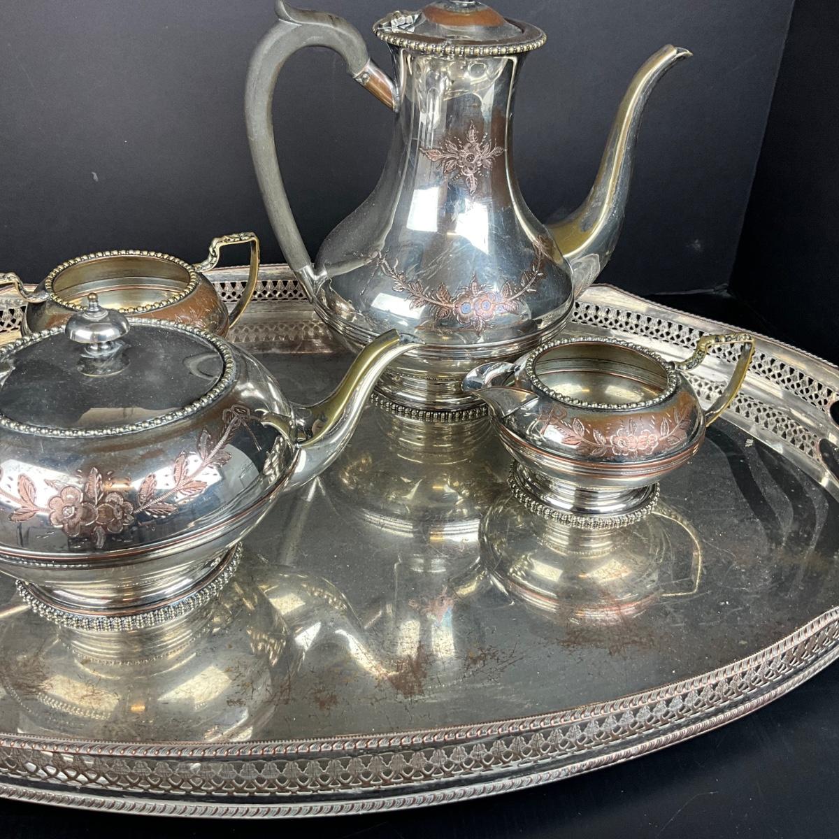 954 5pc Hand Engraved Silver Plated English Tea Coffee Set