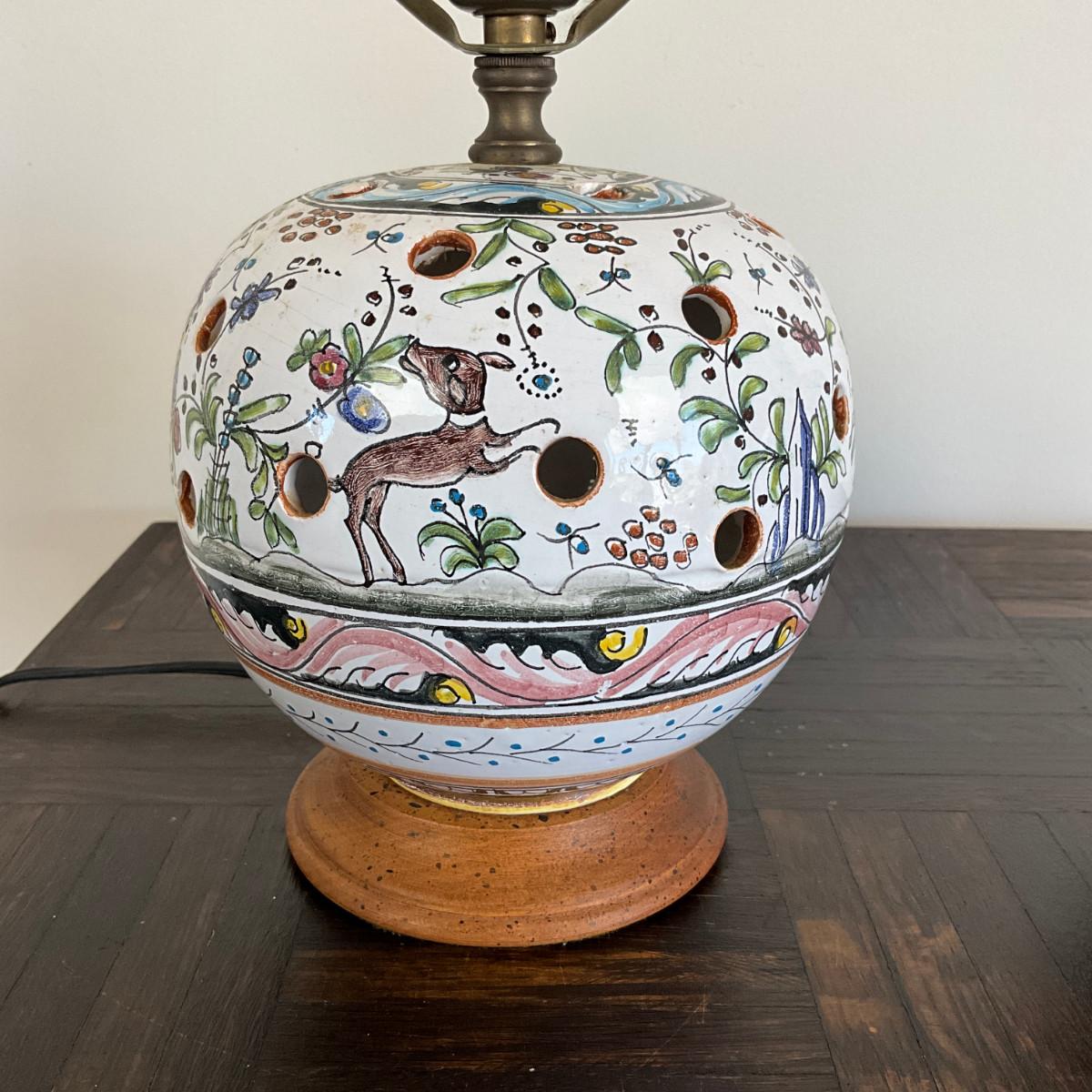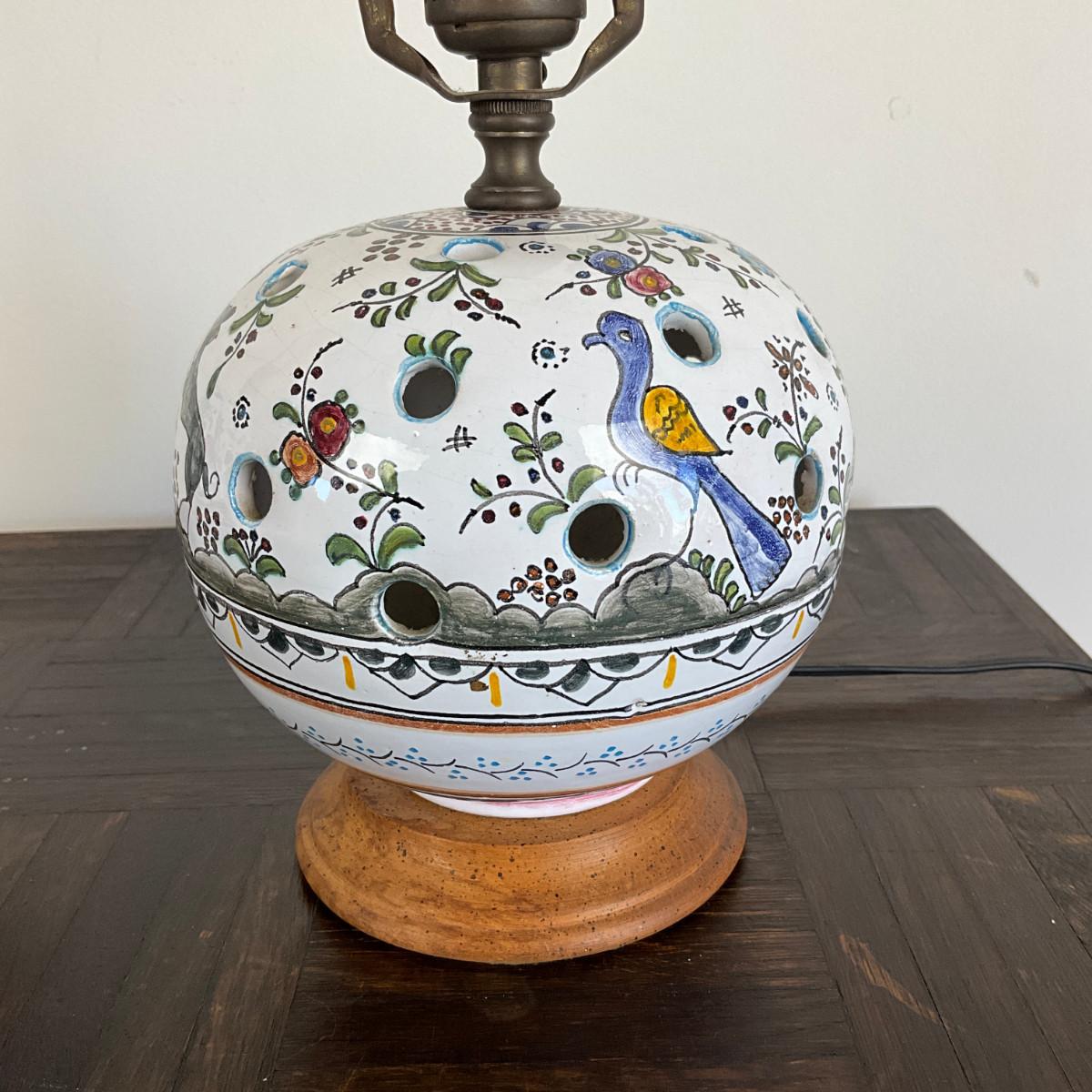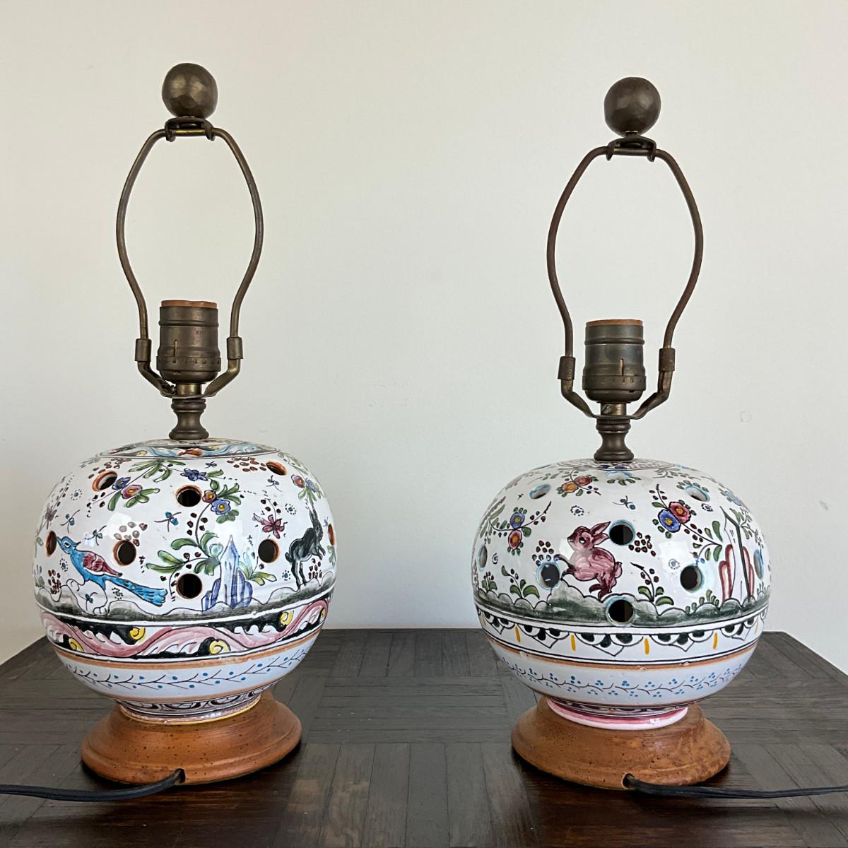 954 Pair Of Vintage Hand-Painted Portuguese Ceramic Flower Frog Lamps