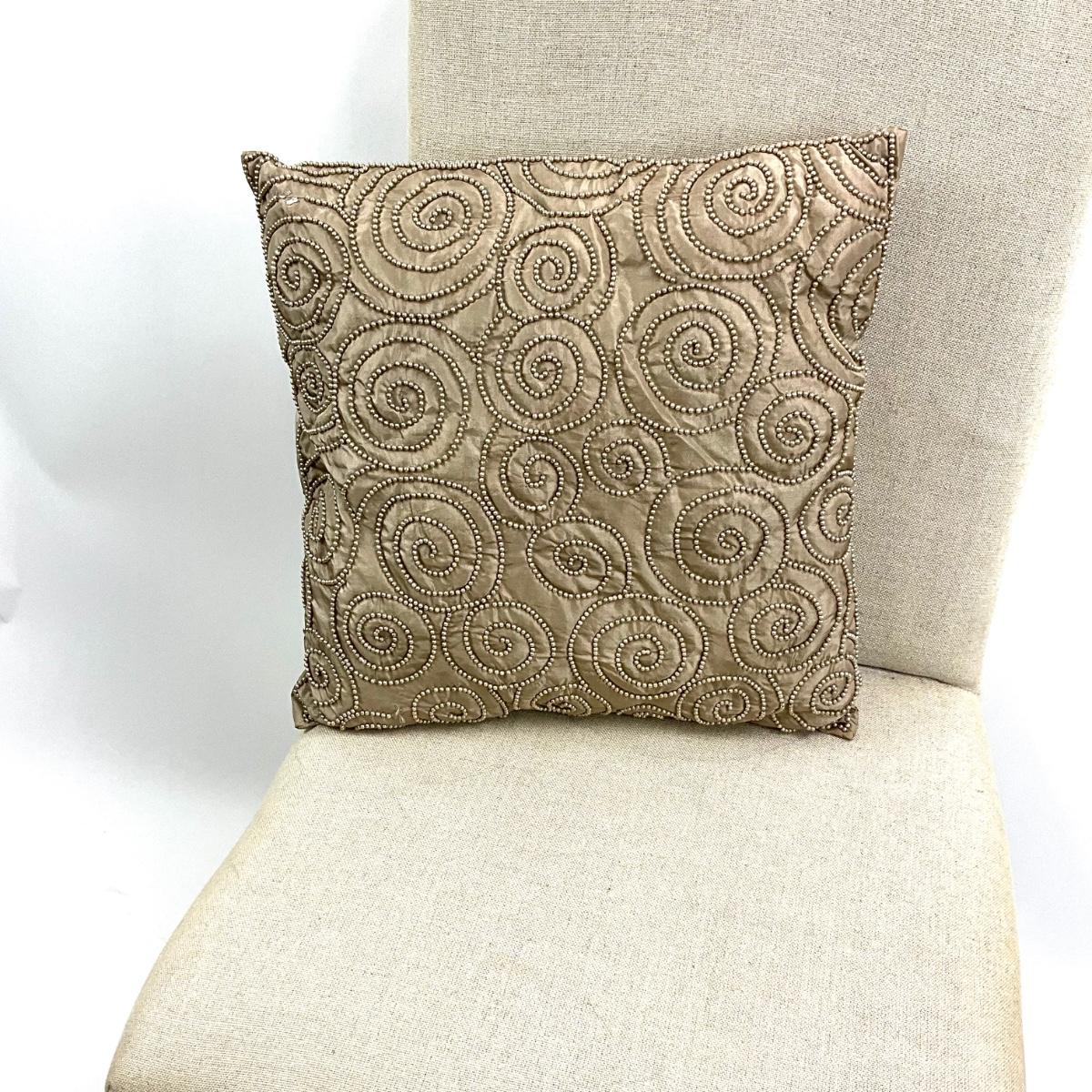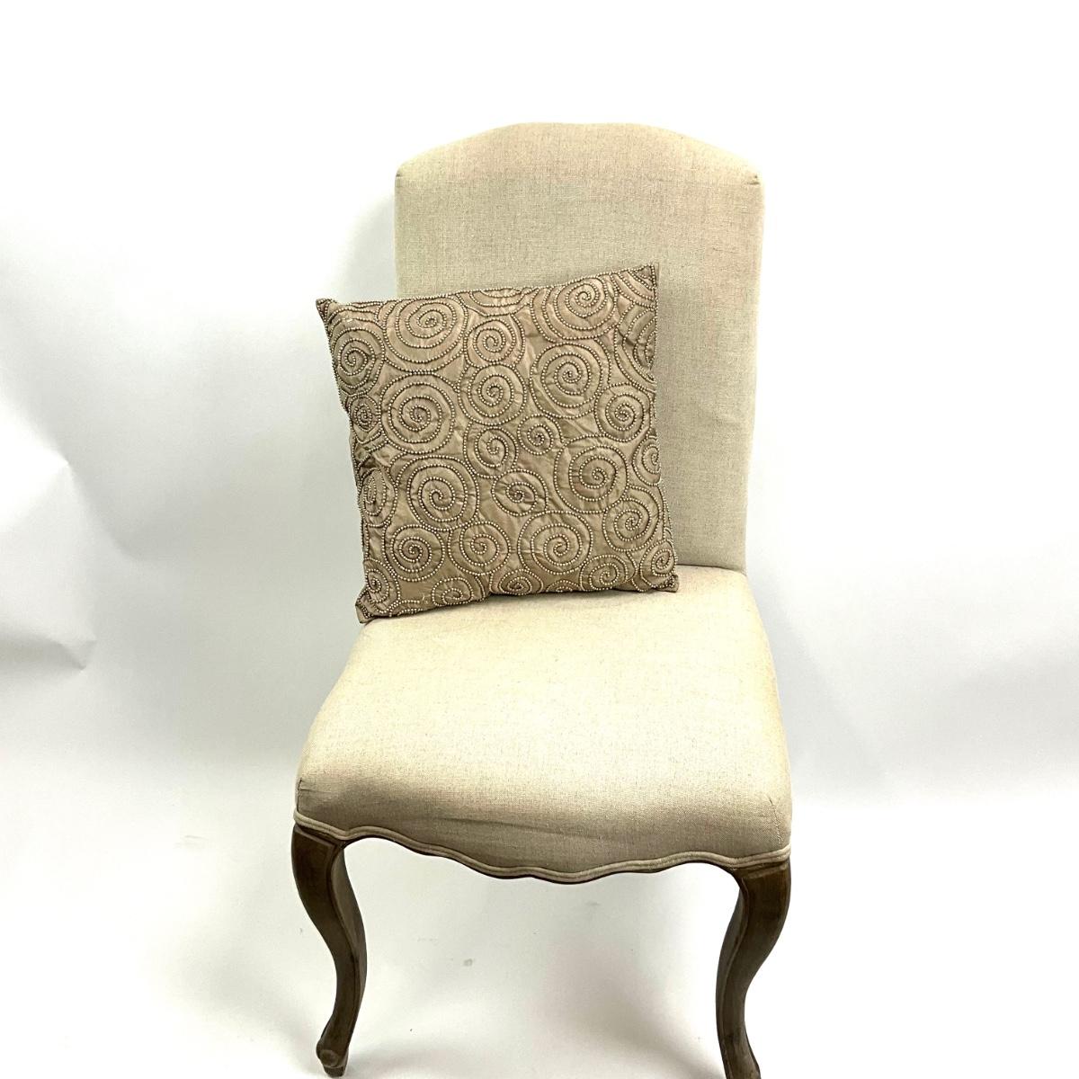 955 Khaki Linen Upholstered Occasional Chair with Beaded Pillow