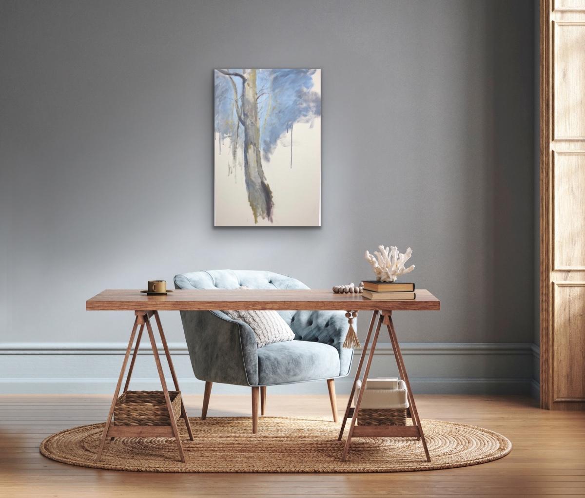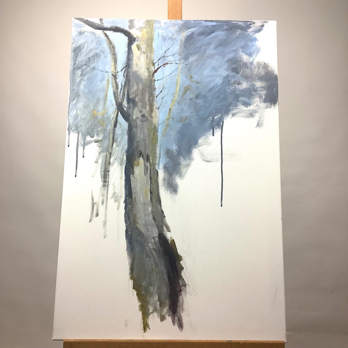The painting is acrylic on stretched canvas, it measures 24" wide x 36" high and dated 2013. David Grafton (1944-2017) was a leader in the Easton Arts scene since the opening of Grafton Galleries on Dover St. In 2004. He was a noted impressionistic landscape painter. Grafton also taught at his art gallery in Easton, md.