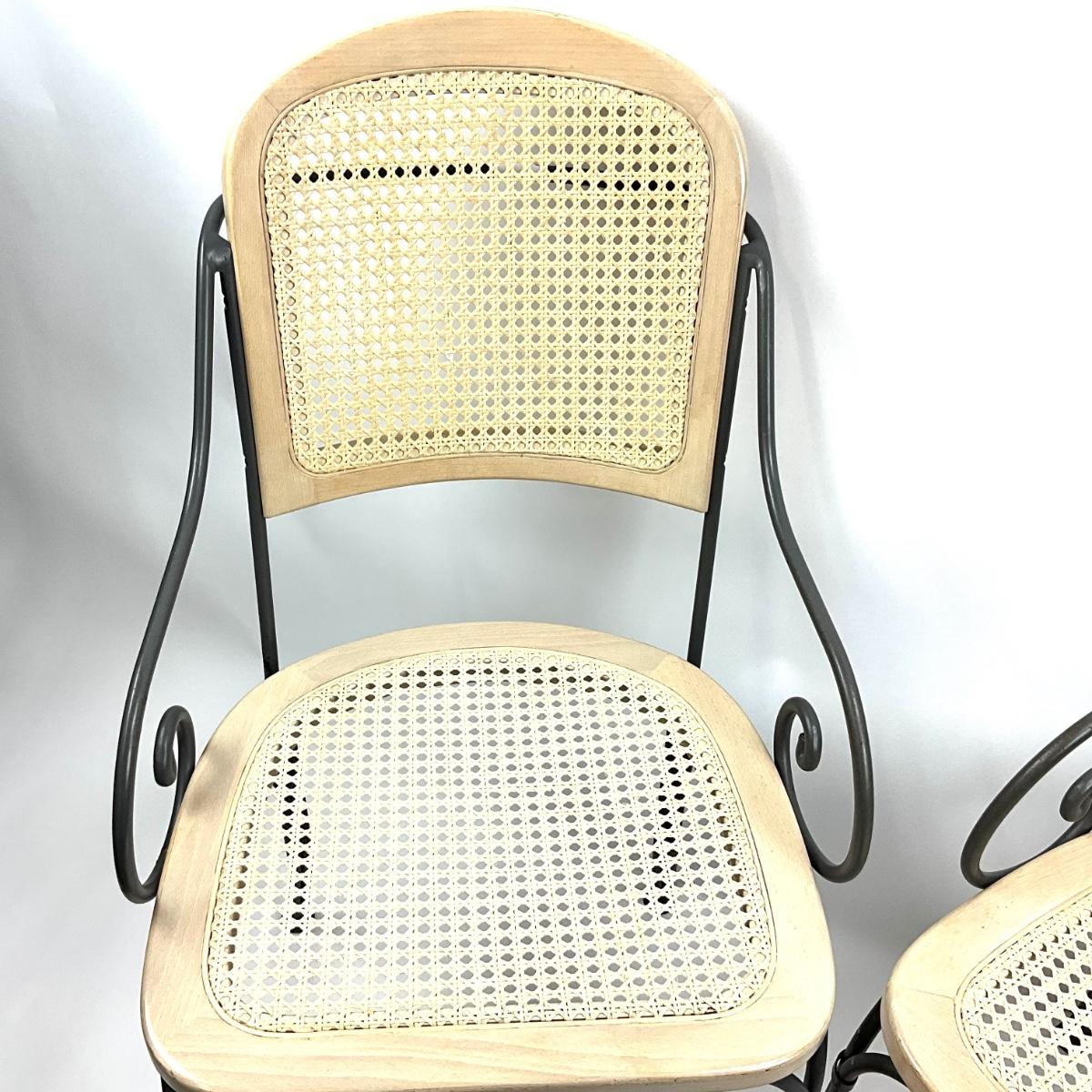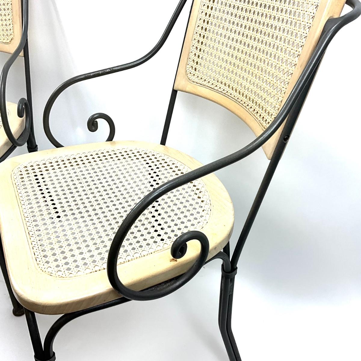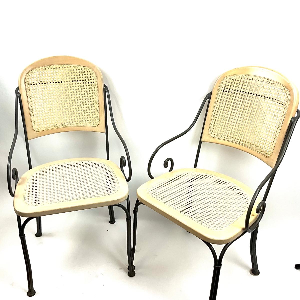 956 Pair of DREXEL Wrought Iron and Pressed Cane Wooden Arm Chairs