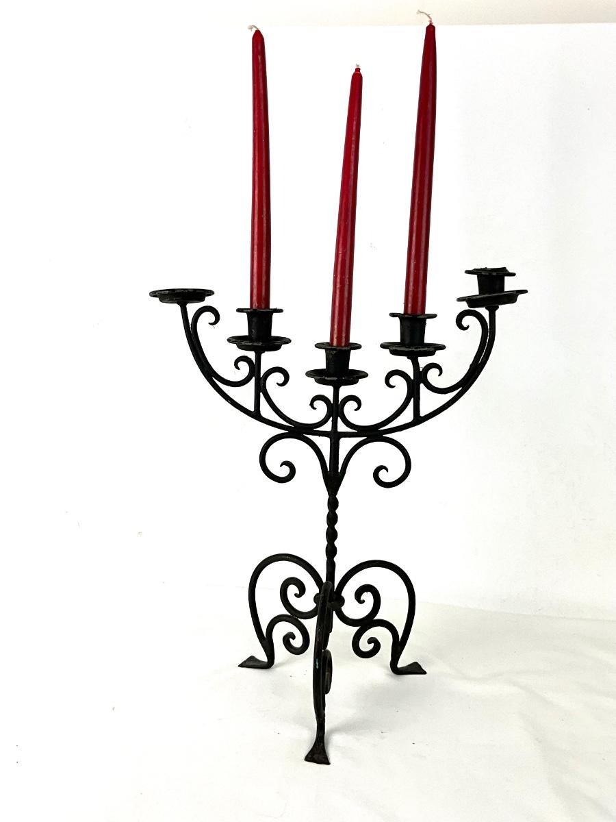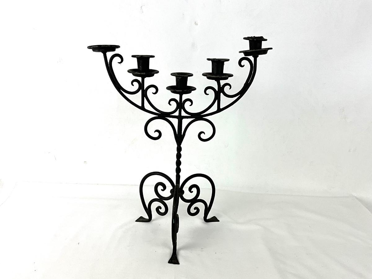 958 Antique Wrought Iron Candelabra with 5 Candles