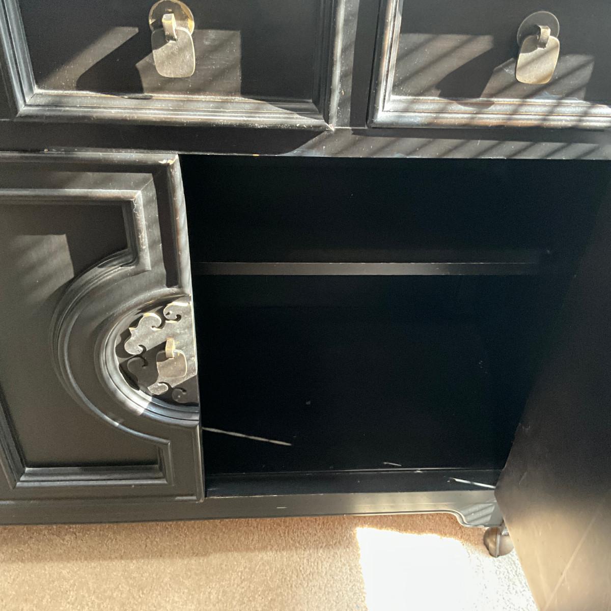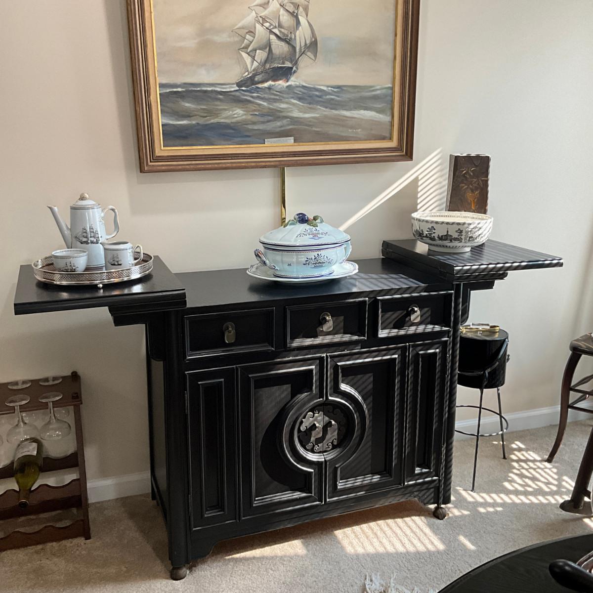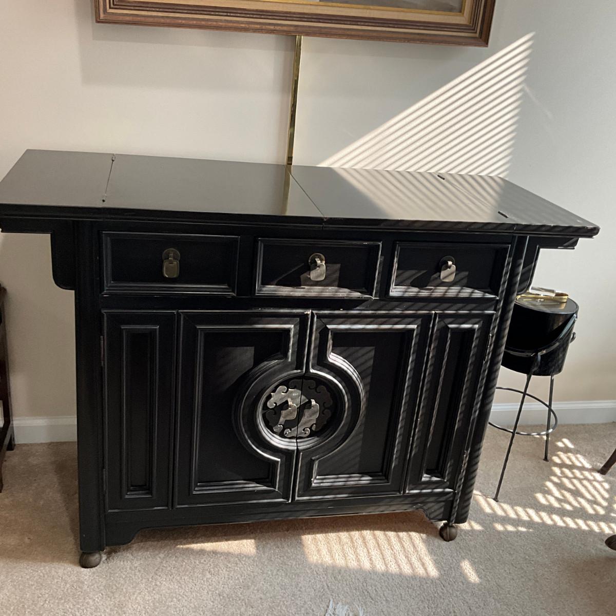 958 Century Black Asian Style Side Board with Fold-Out Top