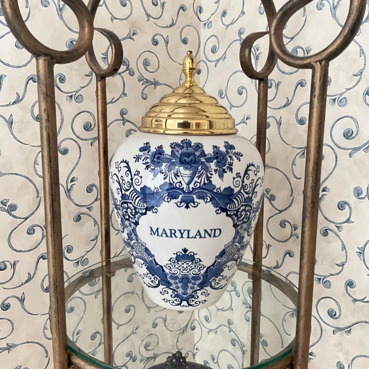 958 Large Maryland Lidded Tobacco Willamsburg Delft