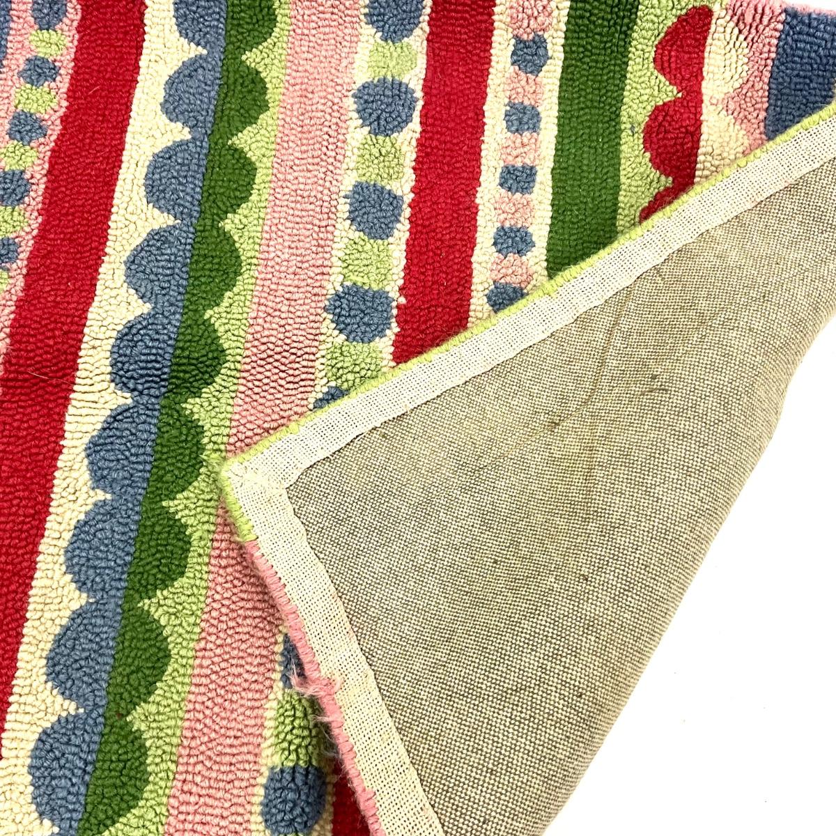 958 Strips and Dots Hooked Area Rug 35" x 24"