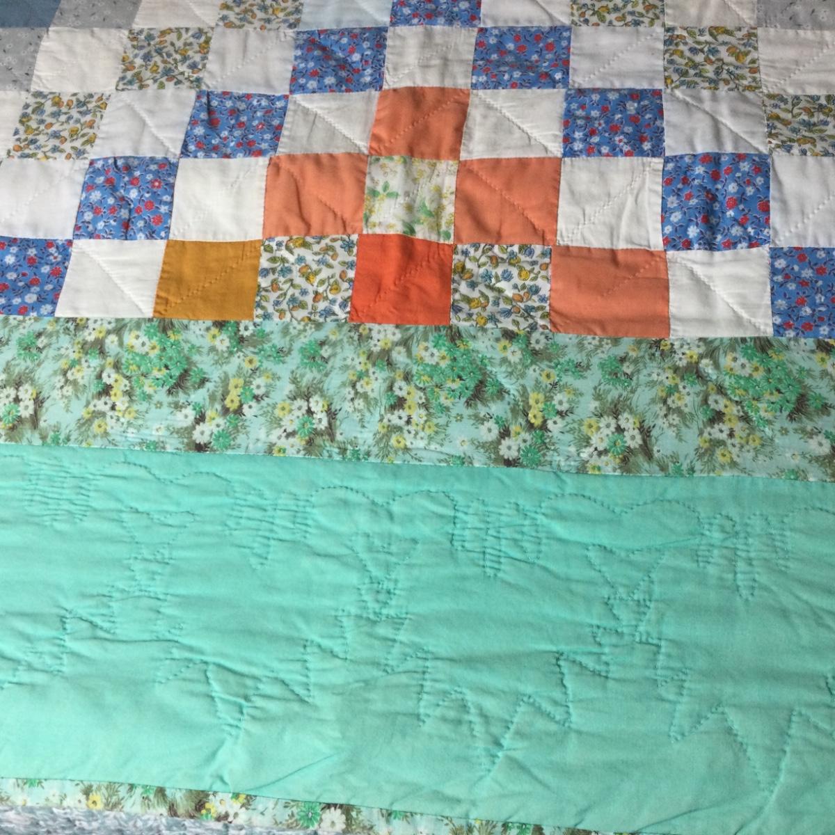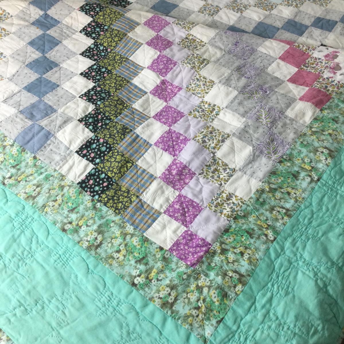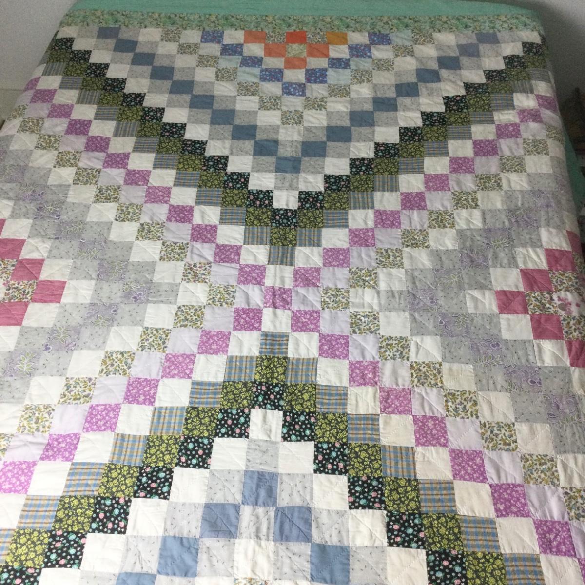 959 Vintage Hand Stitched Checkered Quilt 105” x 105”
