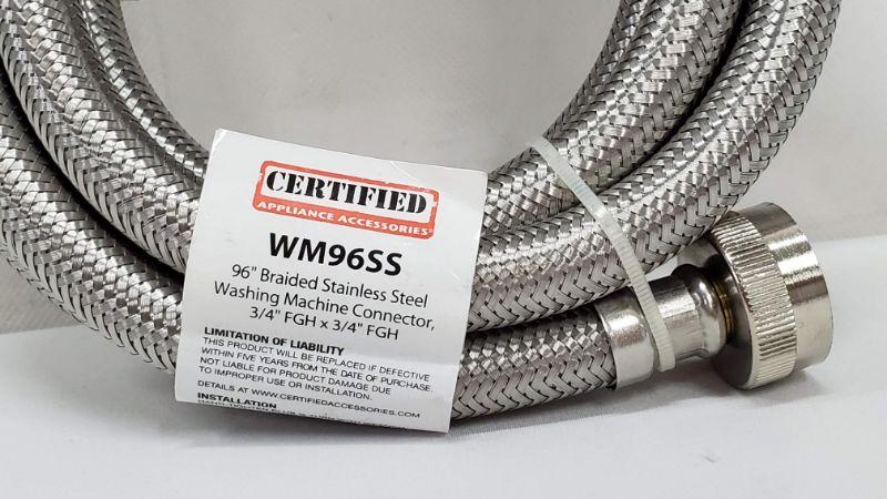 96" Braided Stainless Steel Washing Machine Connector, 3/4" FGH x 3/4" FGH, WM96SS - New