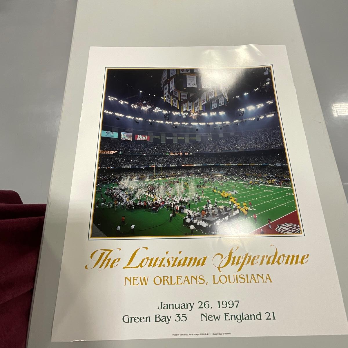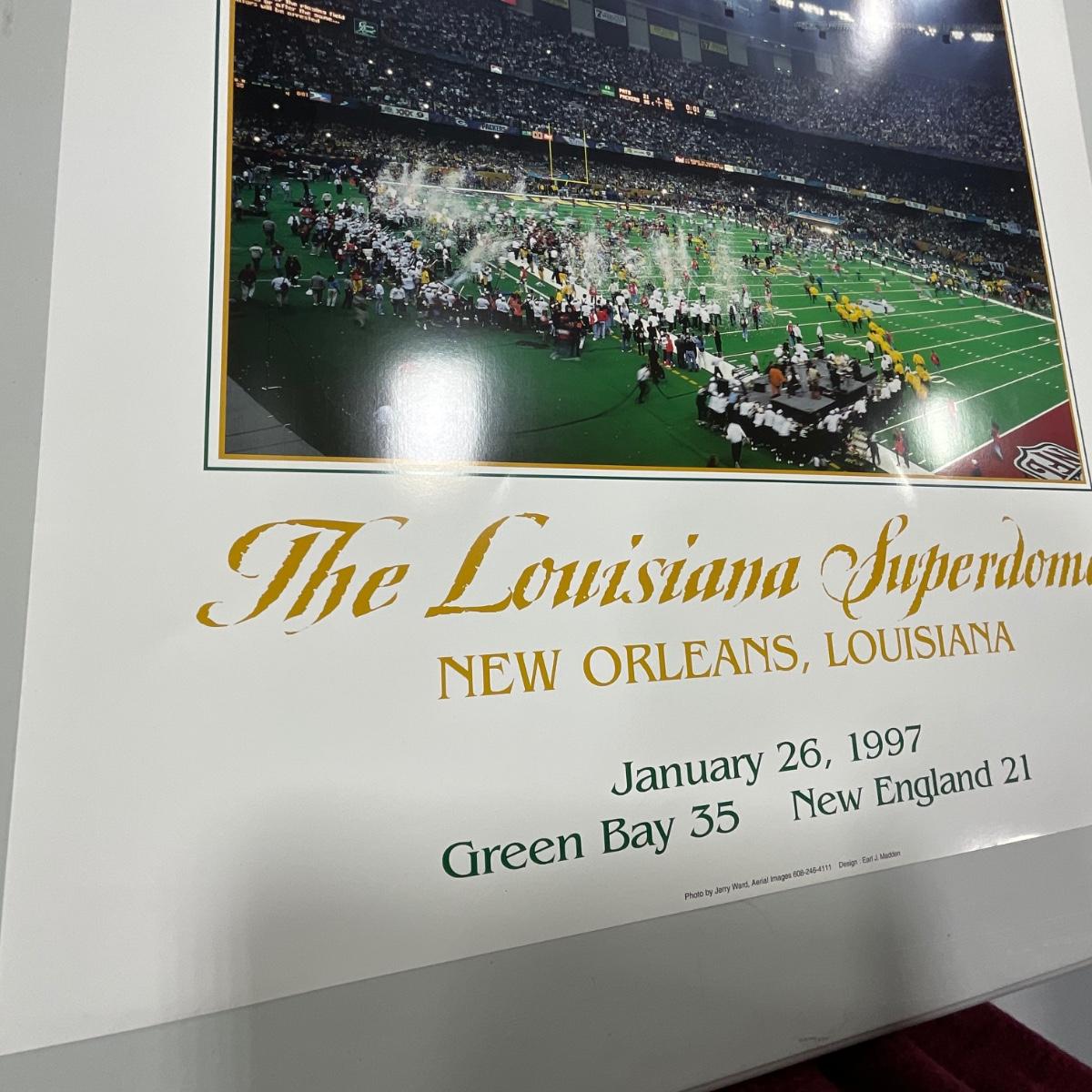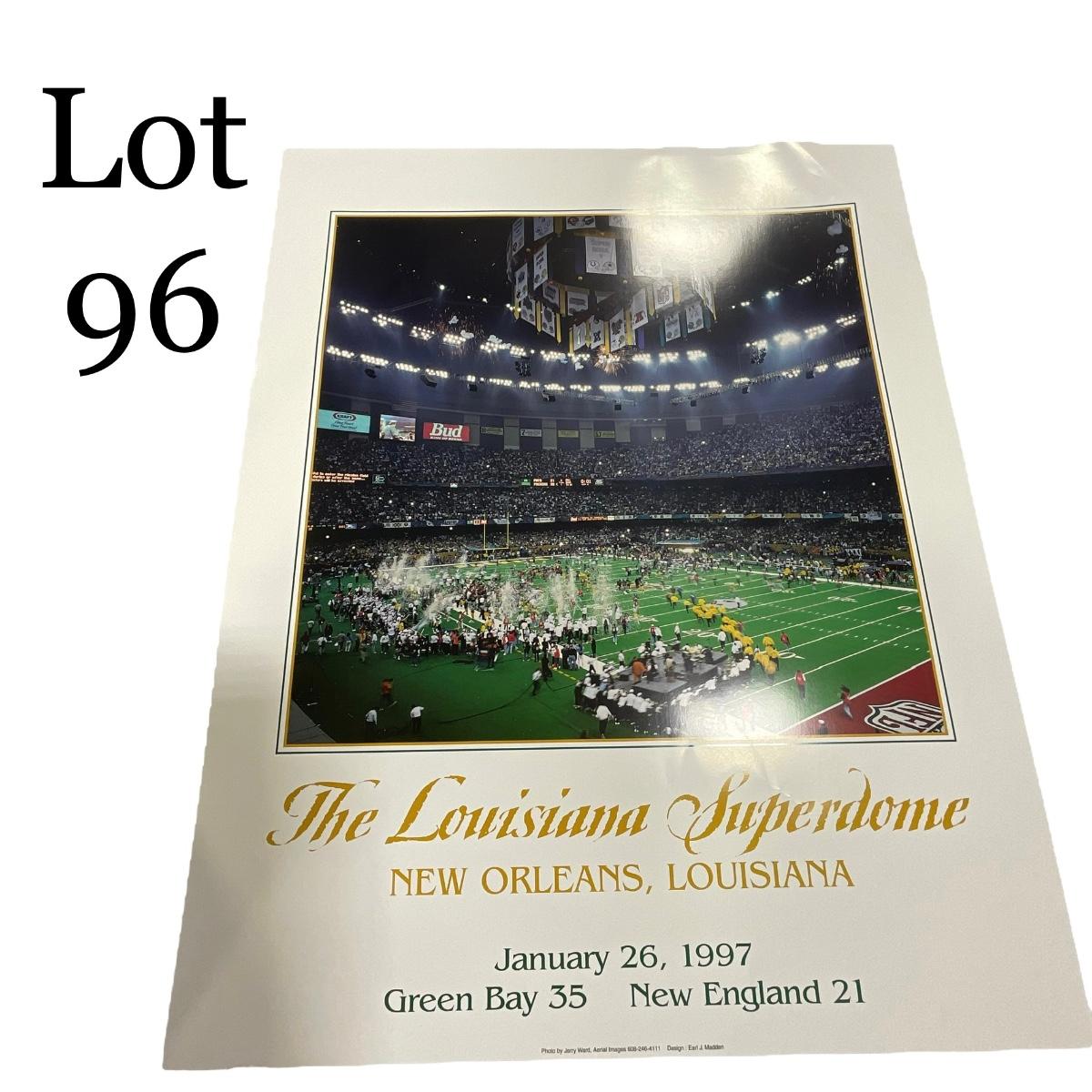 The Louisiana Superdome, Super Bowl 31 Packers Celebrate print. 24 inches wide by 30 inches tall. Please see photos for details and condition. ::: Shipping is NOT available on this lot. If you have any questions regarding this lot please contact the auctioneer either via this website, by direct email or by phone. PICK UP TIMES and other important information can be found in the TERMS and DESCRIPTION of the auction. Please take a look for pertinent information. Thanks!