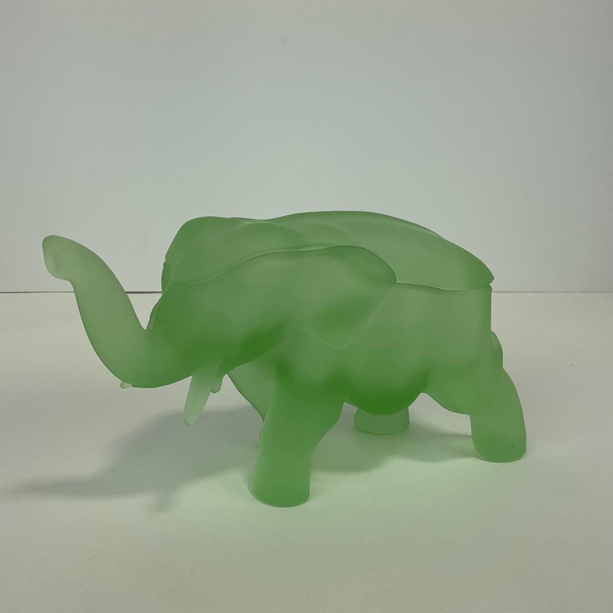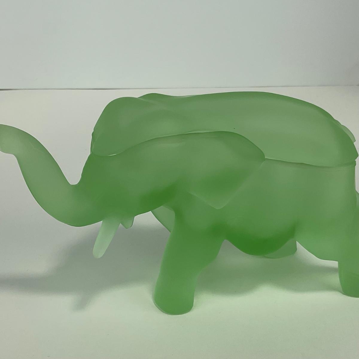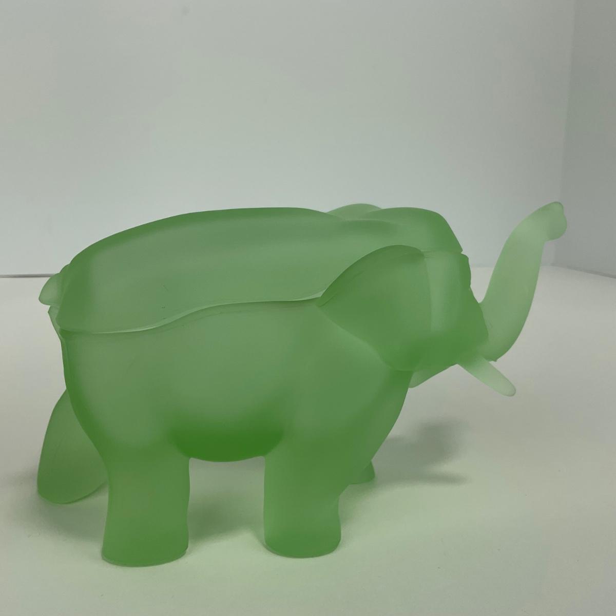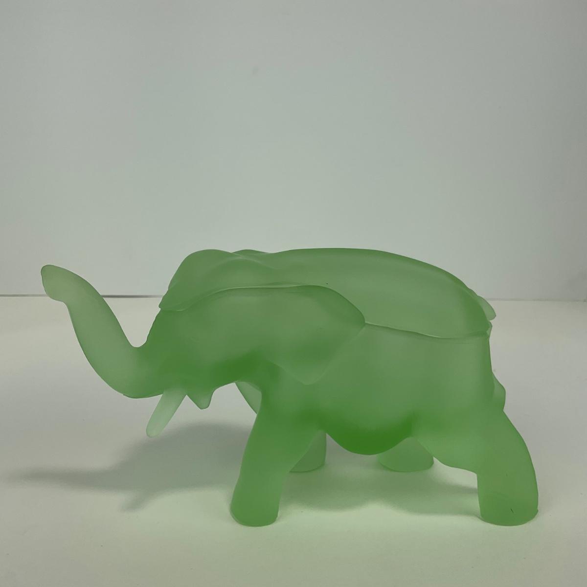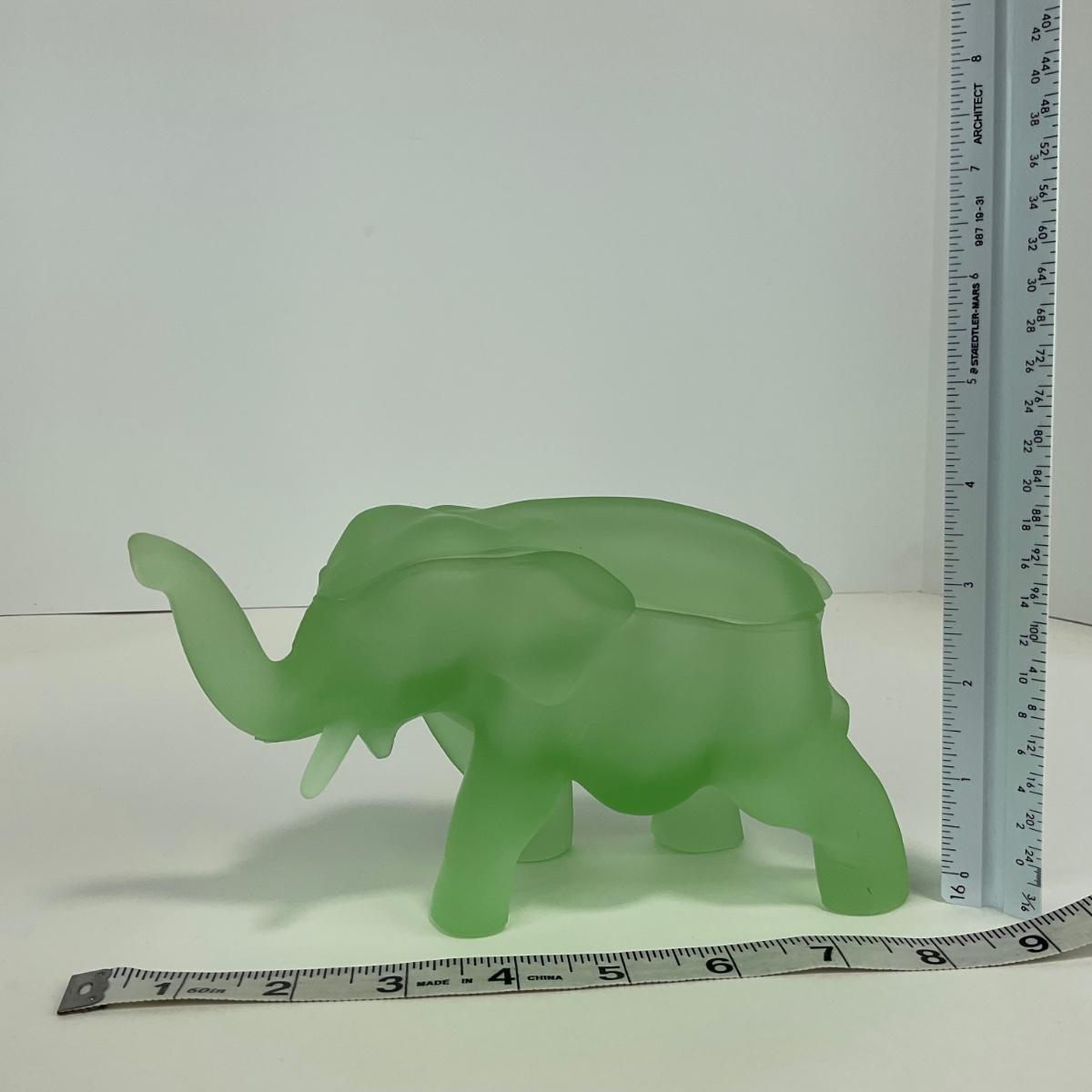 -96- INDIANA | Tiara Green Frosted Satin Glass Elephant Trinket Box