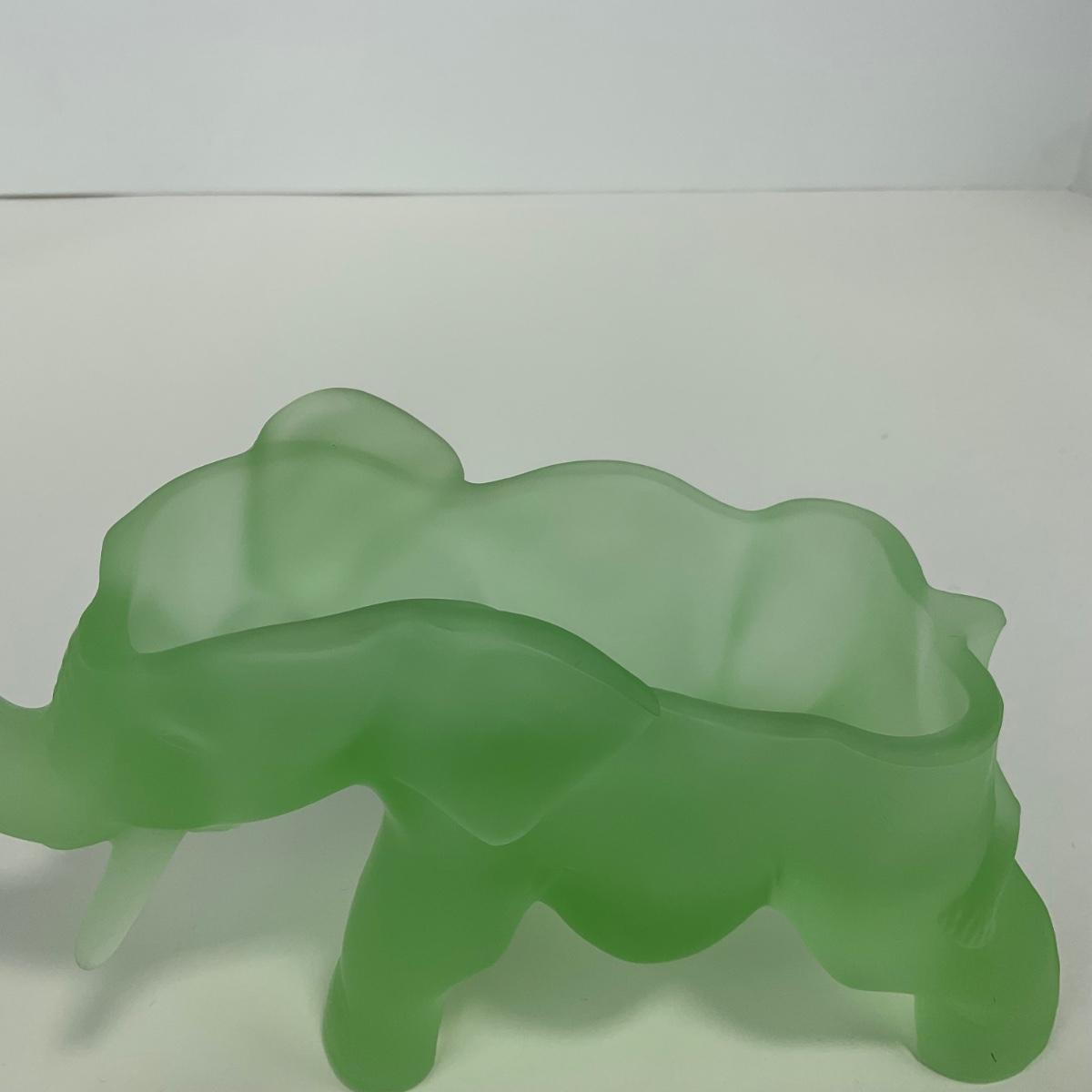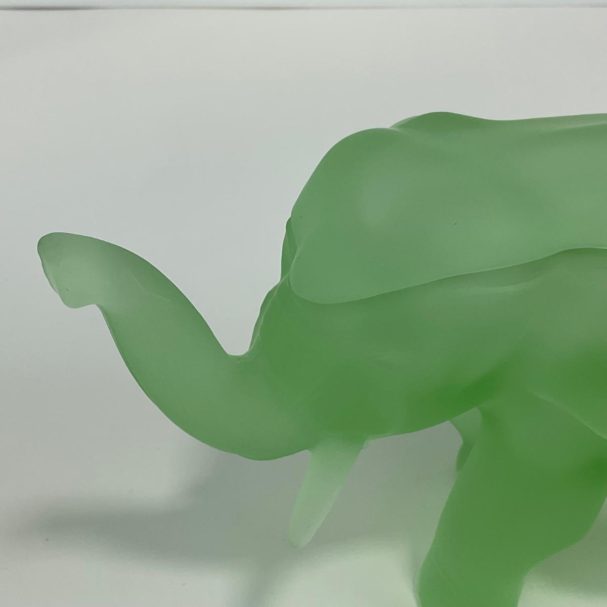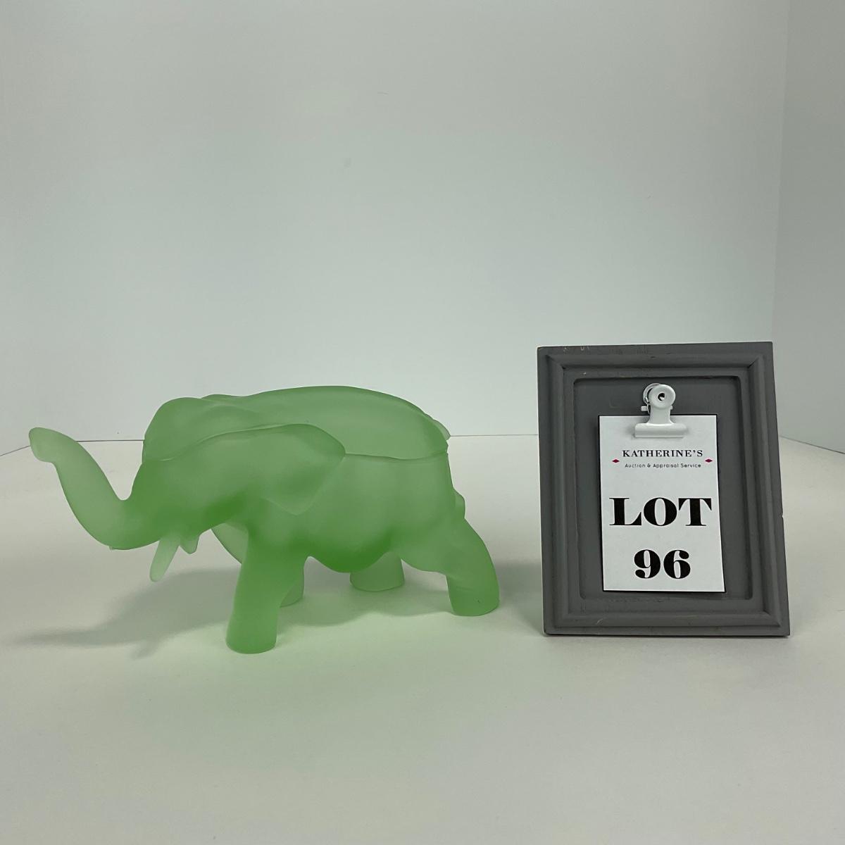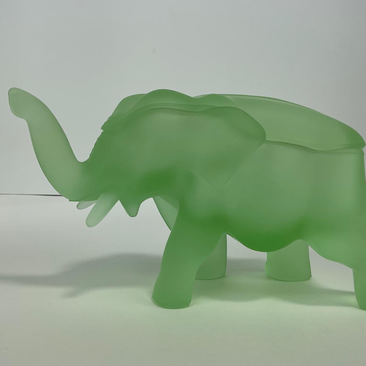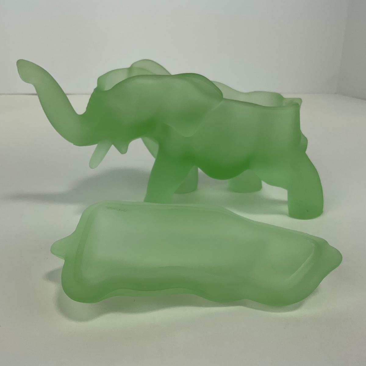 -96- INDIANA | Tiara Green Frosted Satin Glass Elephant Trinket Box