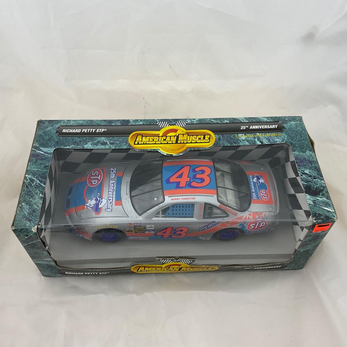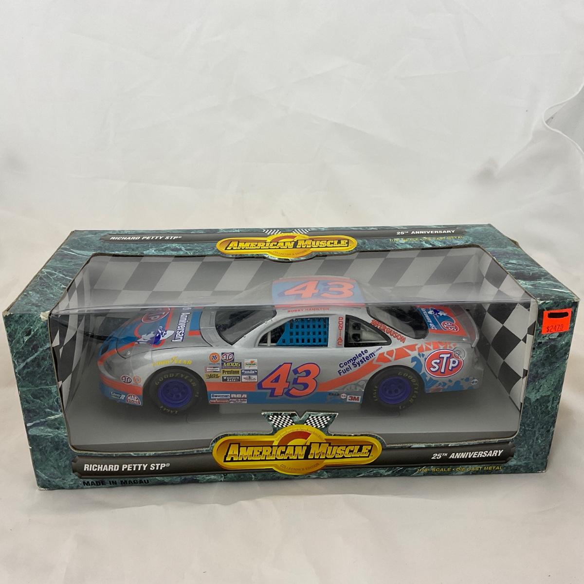 One NASCAR die cast 1:18 scale STP 25th Anniversary Car in box. Driver Richard Petty. Please see photos for details and condition. ::: Shipping is available on this lot. If you require shipping you must let us know at the close of the auction. We will coordinate with you after the item has been won. Shipping fees will include insurance up to or exceeding the value of all items being mailed. If you have any questions regarding this lot please contact the auctioneer either via this website, by direct email or by phone. PICK UP TIMES and other important information can be found in the TERMS and DESCRIPTION of the auction. Please take a look for pertinent information. Thanks!