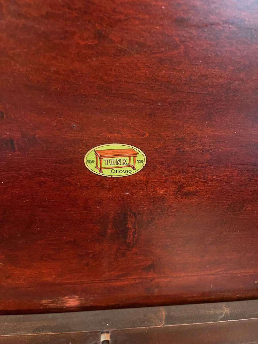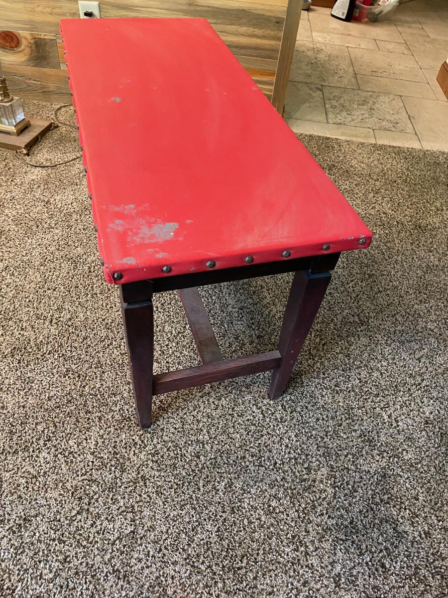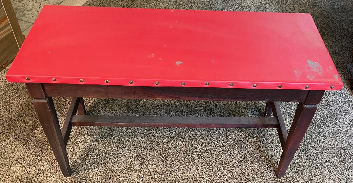 Mahogany Legs. Red Vinal Top. 37" x 15" x 31" Tall