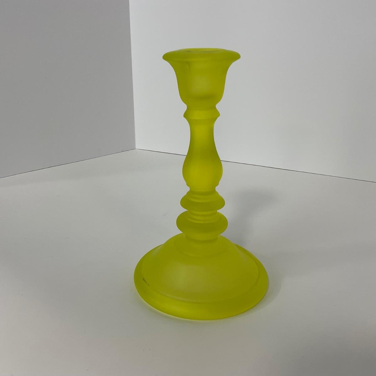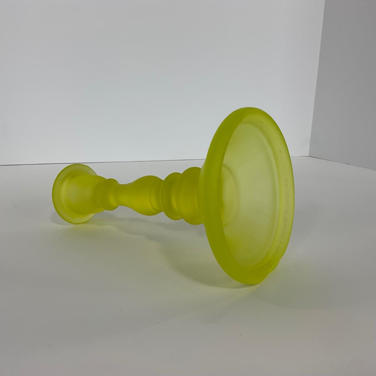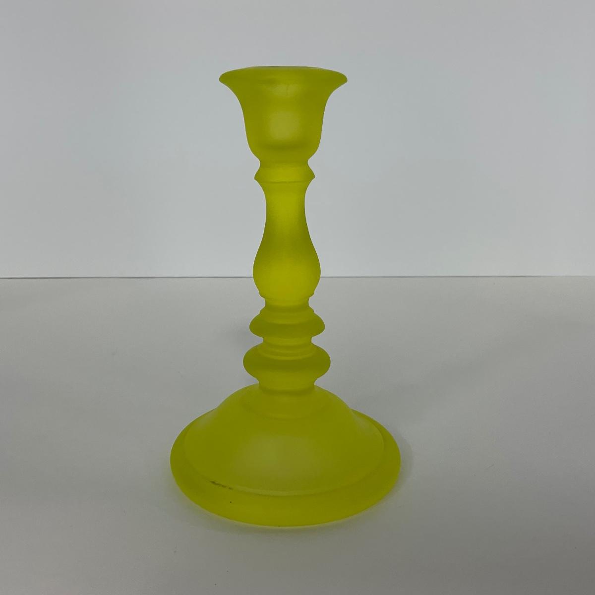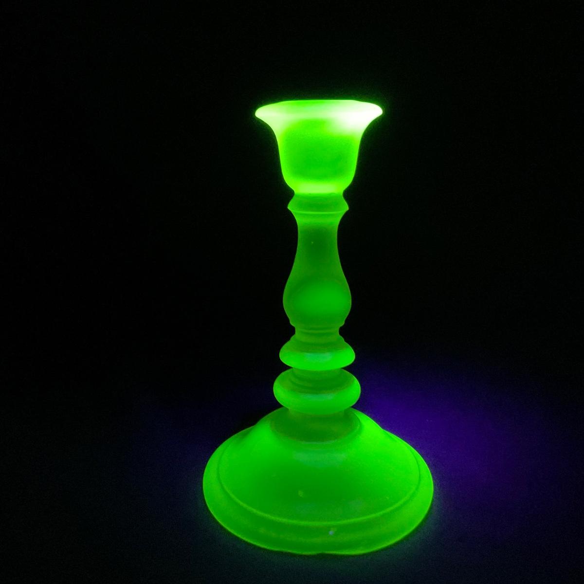 -96- URANIUM | Satin Vaseline Glass Candlestick