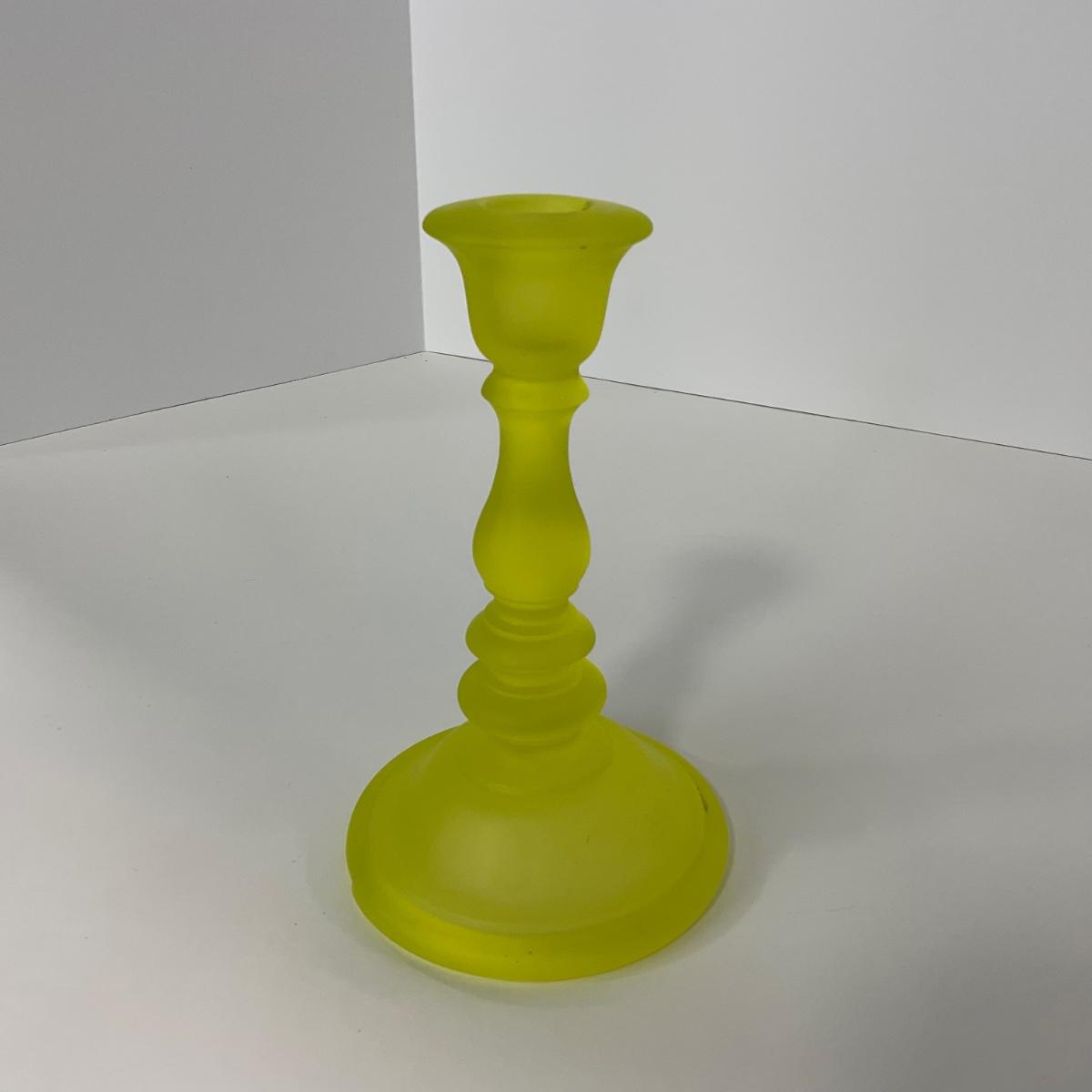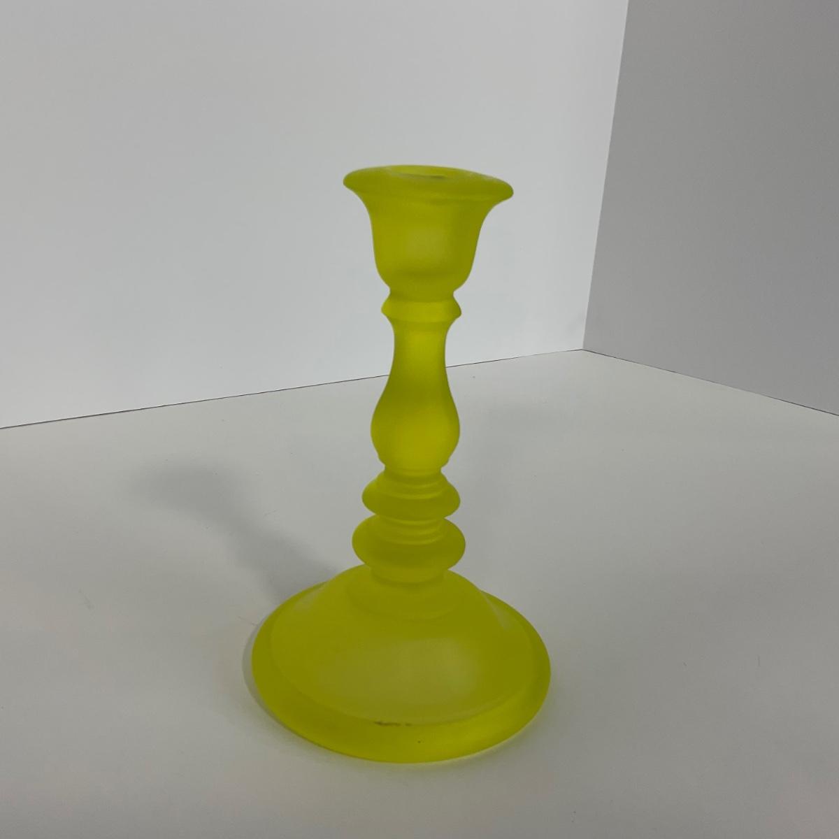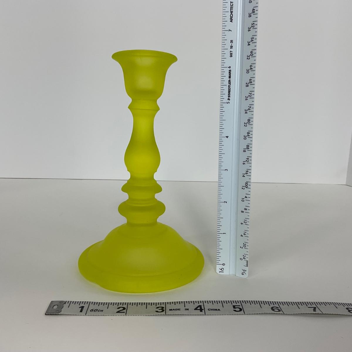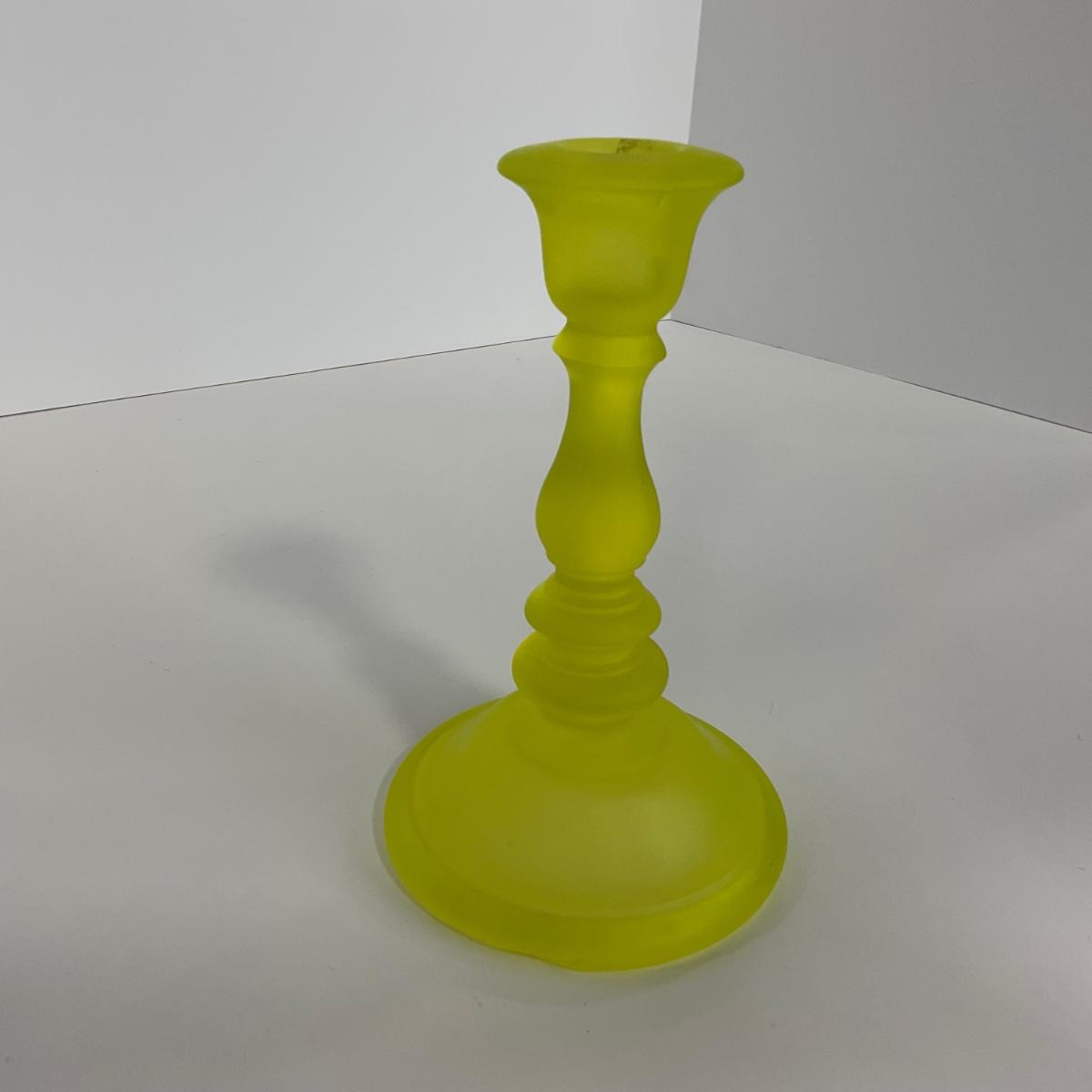 -96- URANIUM | Satin Vaseline Glass Candlestick