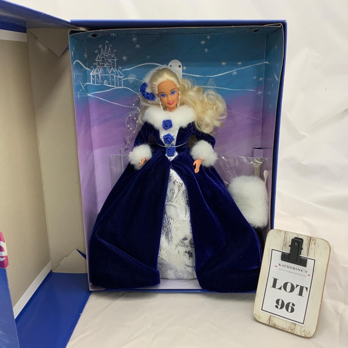Winter Princess Barbie, in her beautiful velvet dress. Produced by Mattel in 1994. New, in box. Please see photos for details and condition. !!! Proceeds from this auction will be donated to the NEW COMMUNITY SHELTER in Green Bay, Wisconsin. Please see Sale Description to the Left for more information. !!! ::: Shipping is available on this lot. If you require shipping you must let us know at the close of the auction. We will coordinate with you after the item has been won. Shipping fees will include insurance up to or exceeding the value of all items being mailed. If you have any questions regarding this lot please contact the auctioneer either via this website, by direct email or by phone. PICK UP TIMES and other important information can be found in the TERMS and DESCRIPTION of the auction. Please take a look for pertinent information. Thanks!