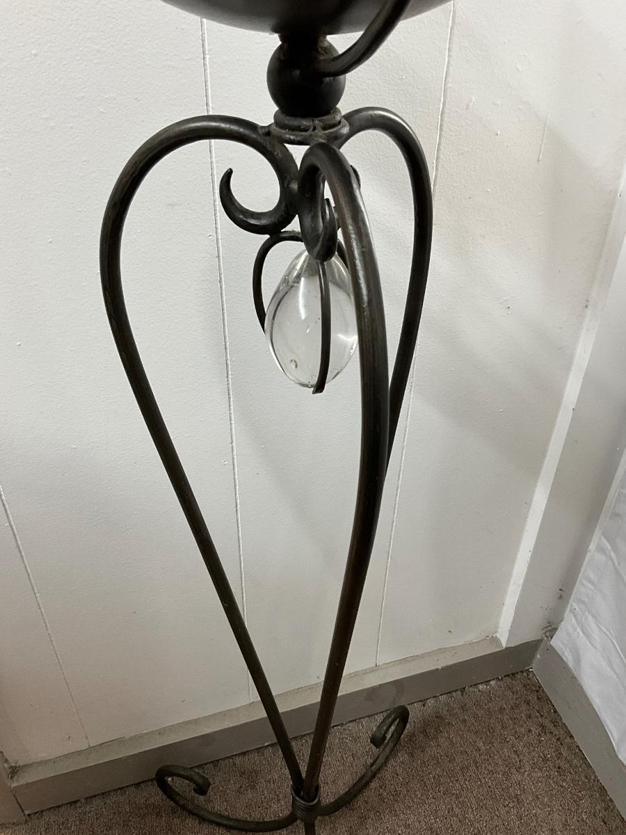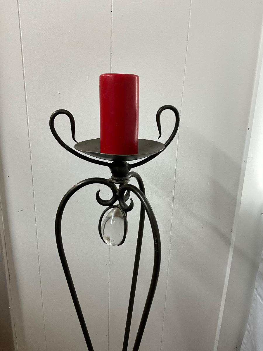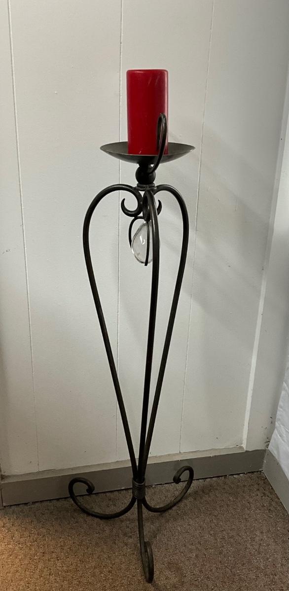 960 Vintage Large Pillar Metal Floor Candle Stand with Glass Accent