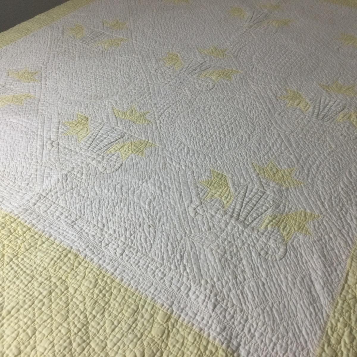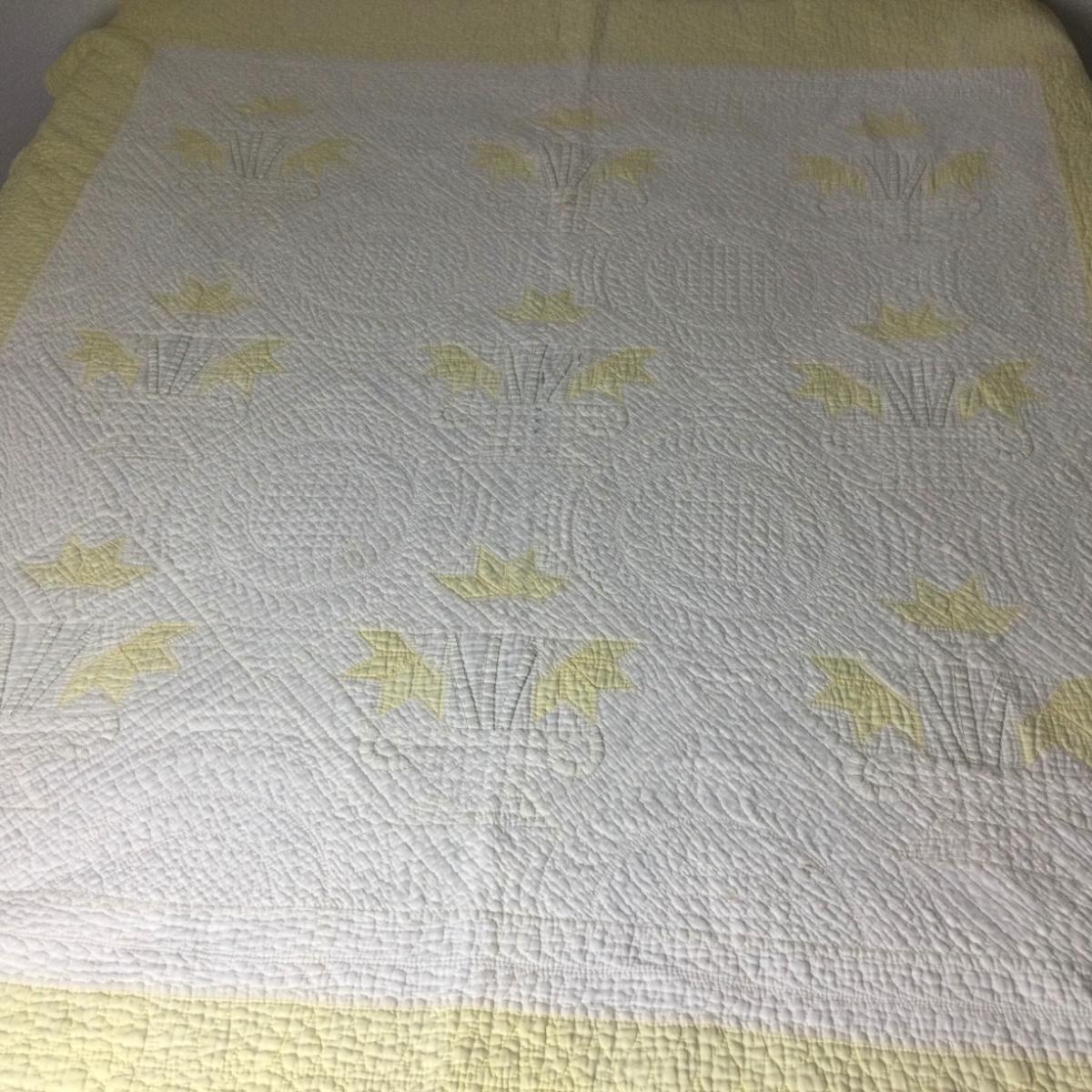 961 Vintage Yellow & White Basket Quilt 70” x 73”