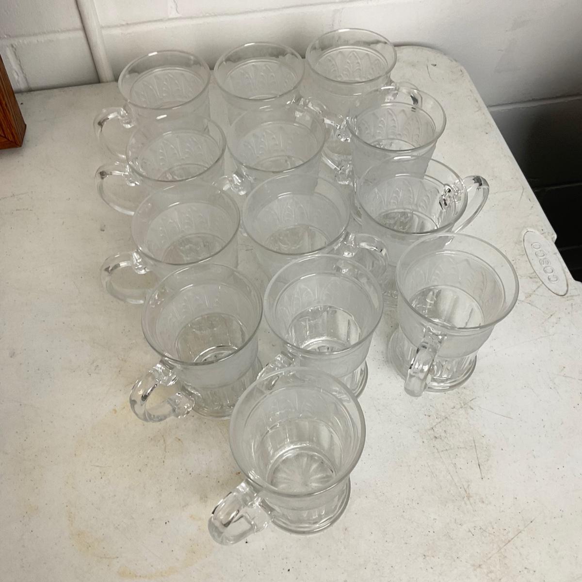 962 Lot of 13 Frosted Glass Mugs in Athens Pattern