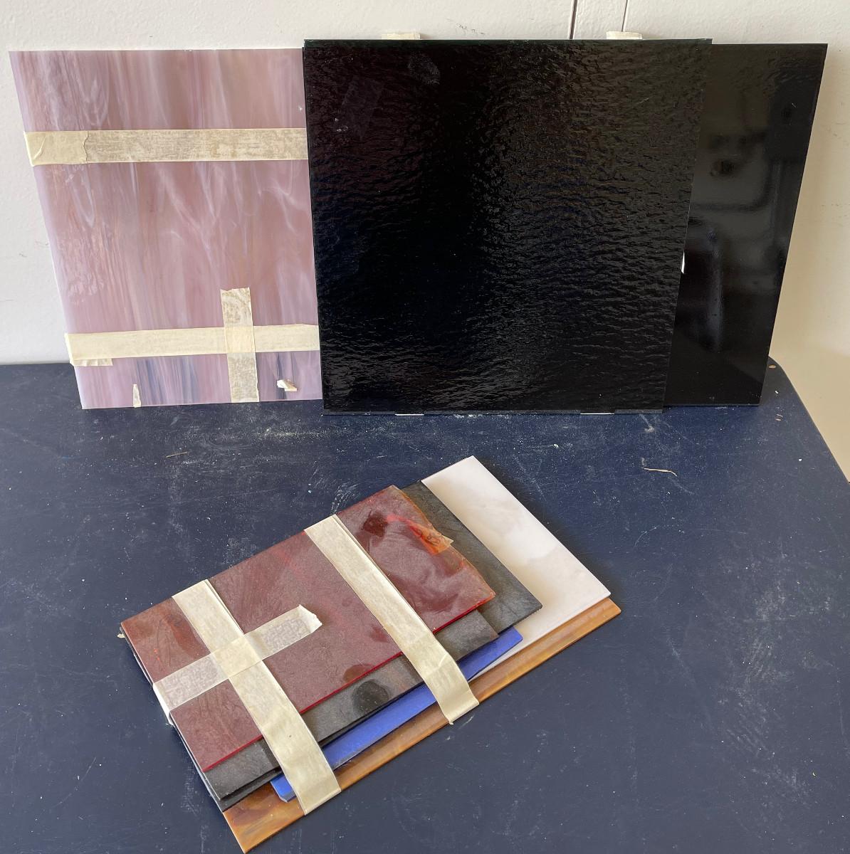 #963G Stain Glass Several Pieces Black 12" Squares