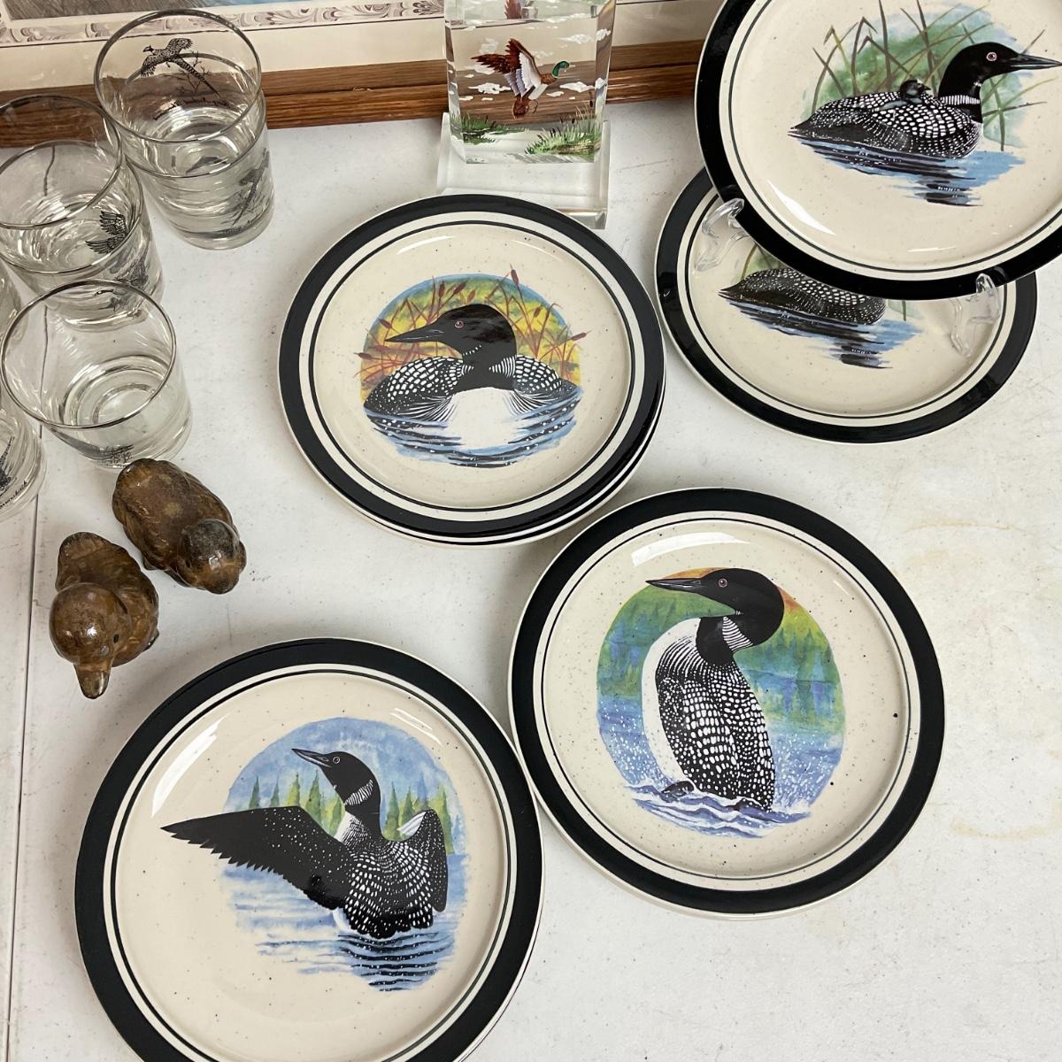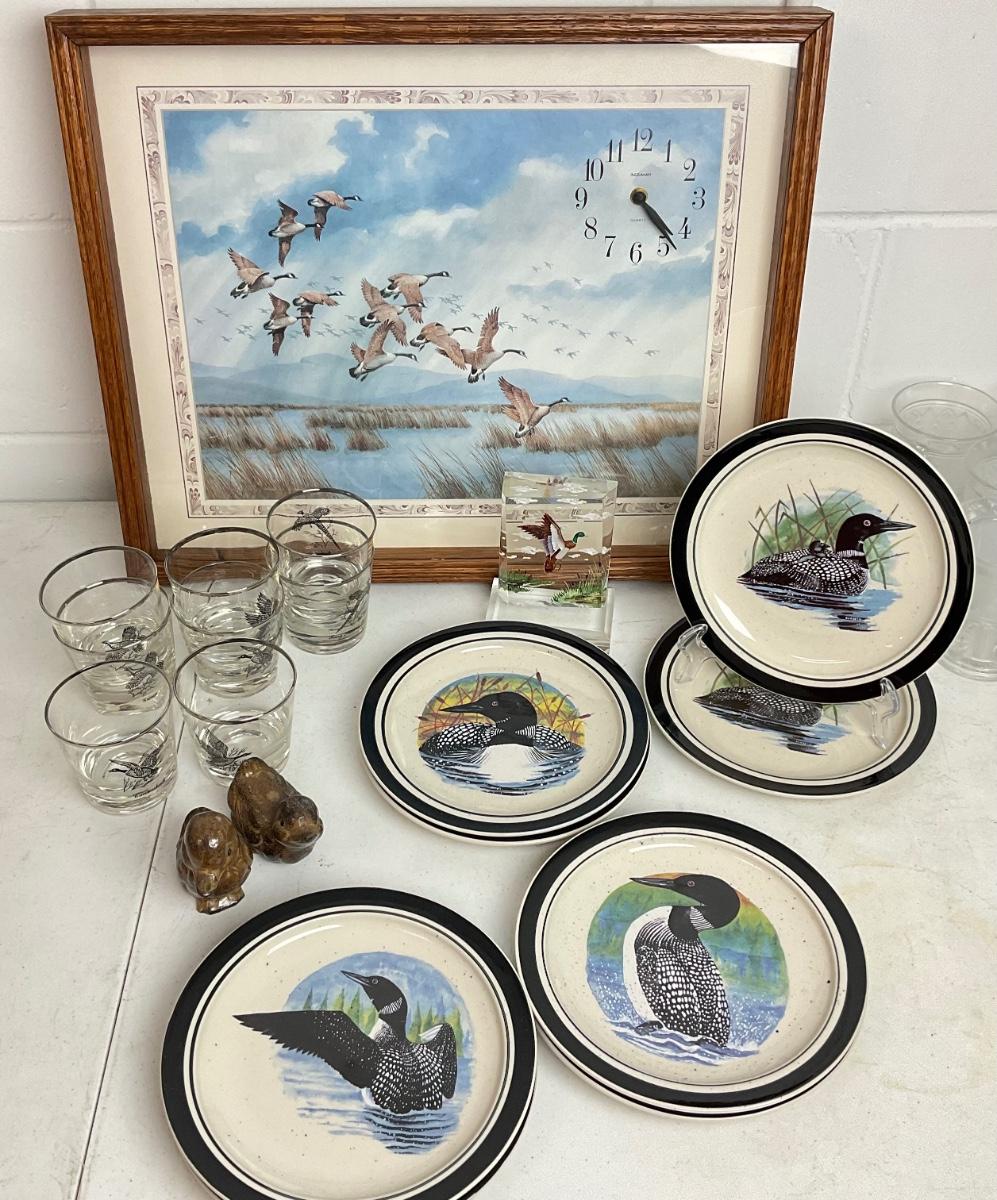 964 Lot of Waterfowl Dishes, Glassware, Wall Clock