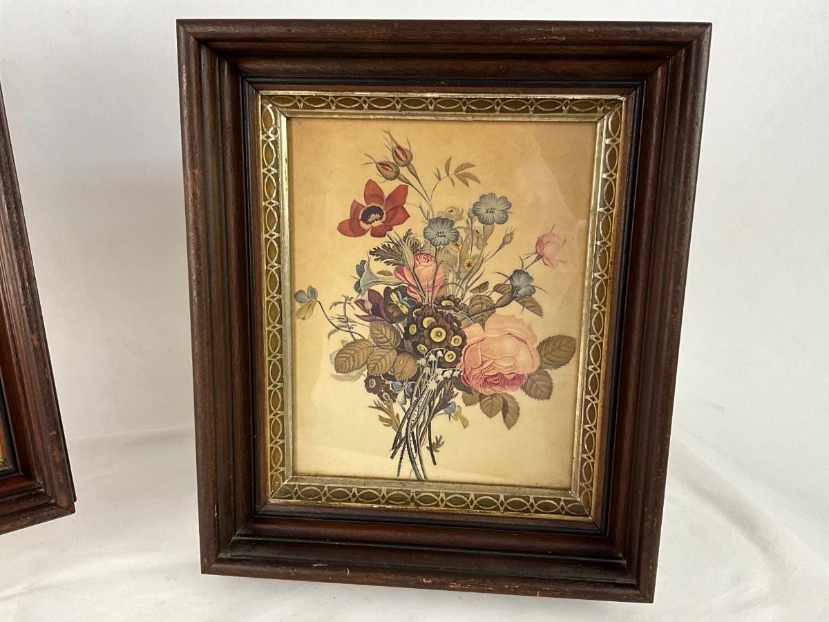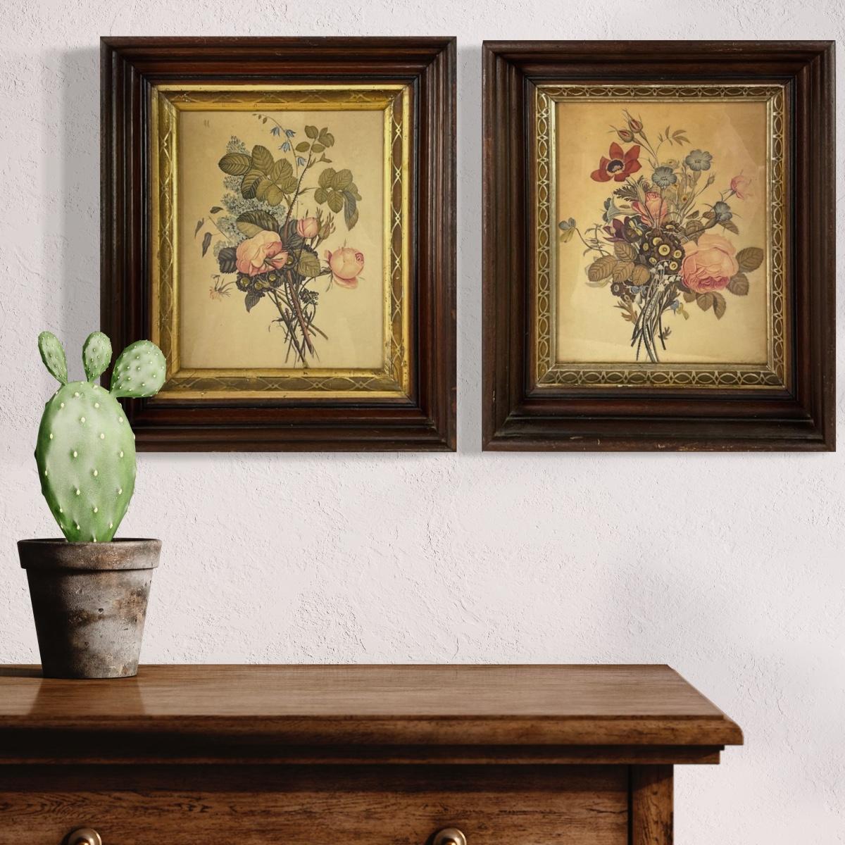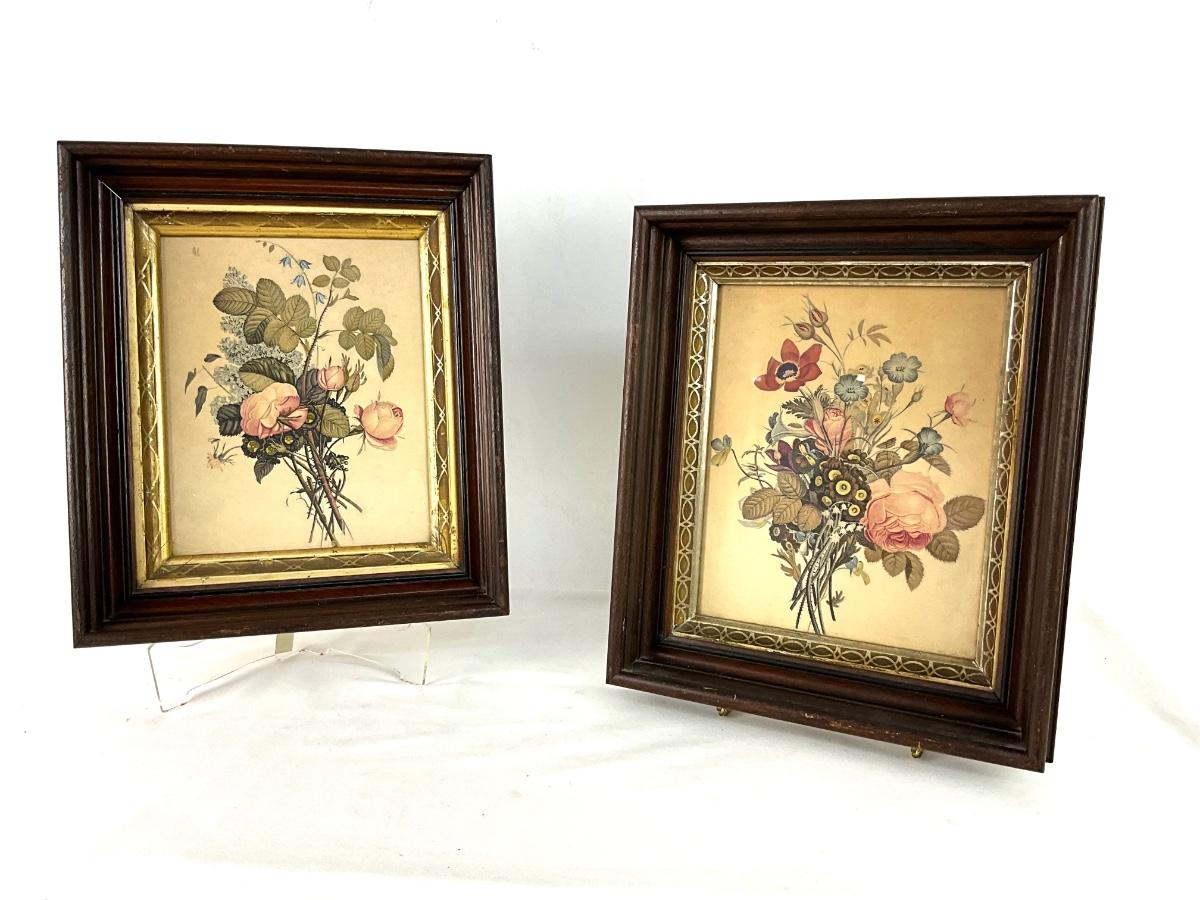 964 Pair of Vintage Floral Prints in Walnut Frames