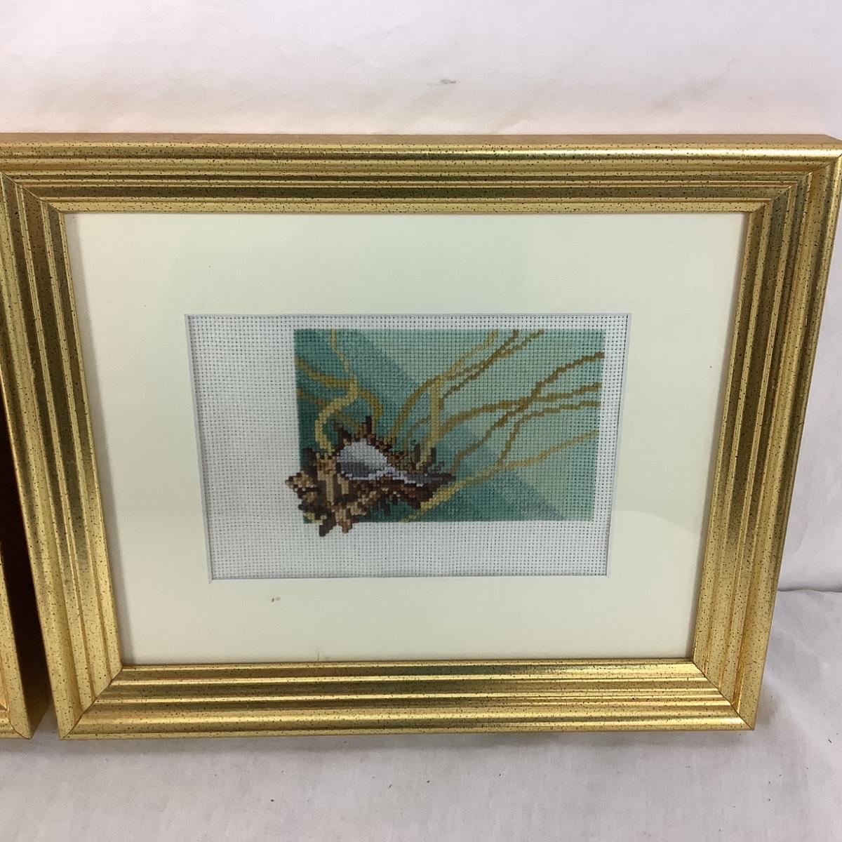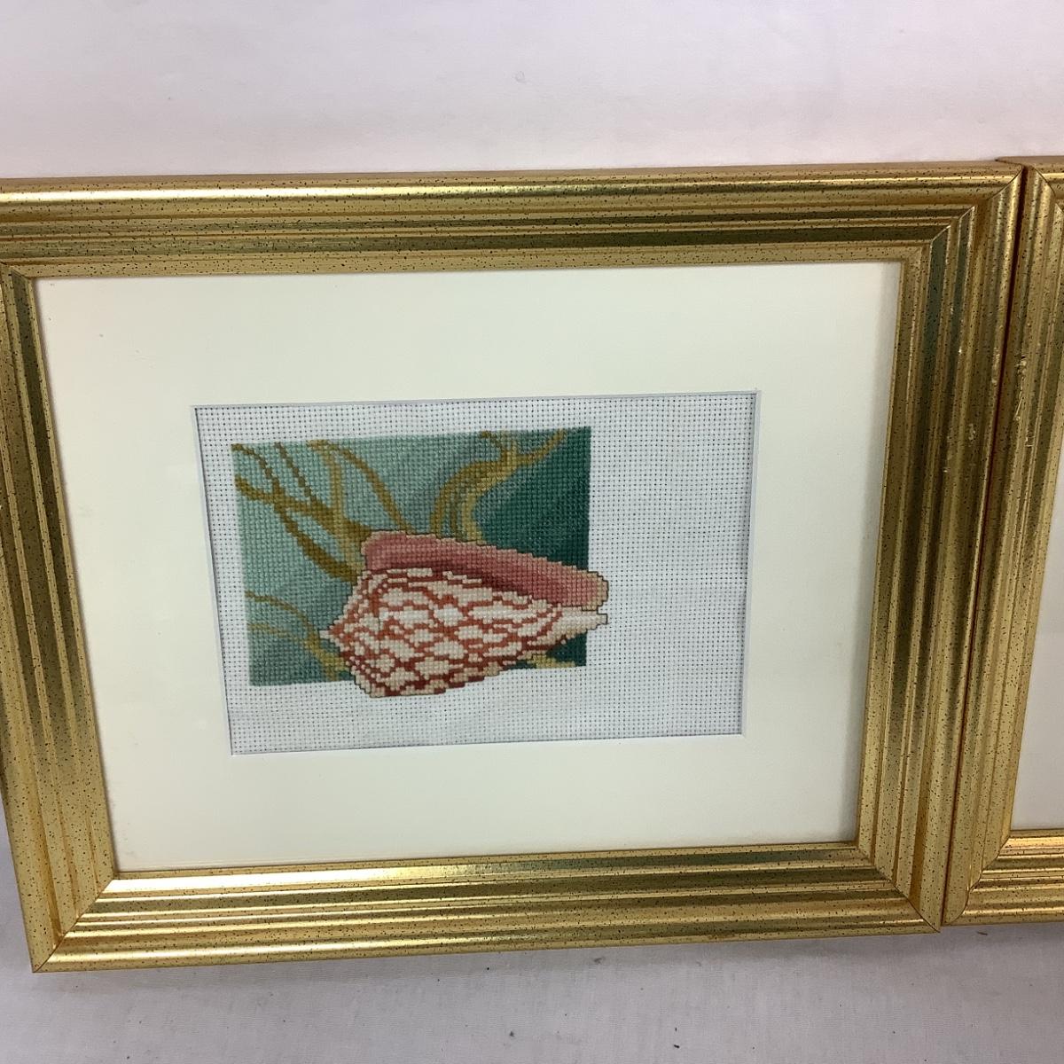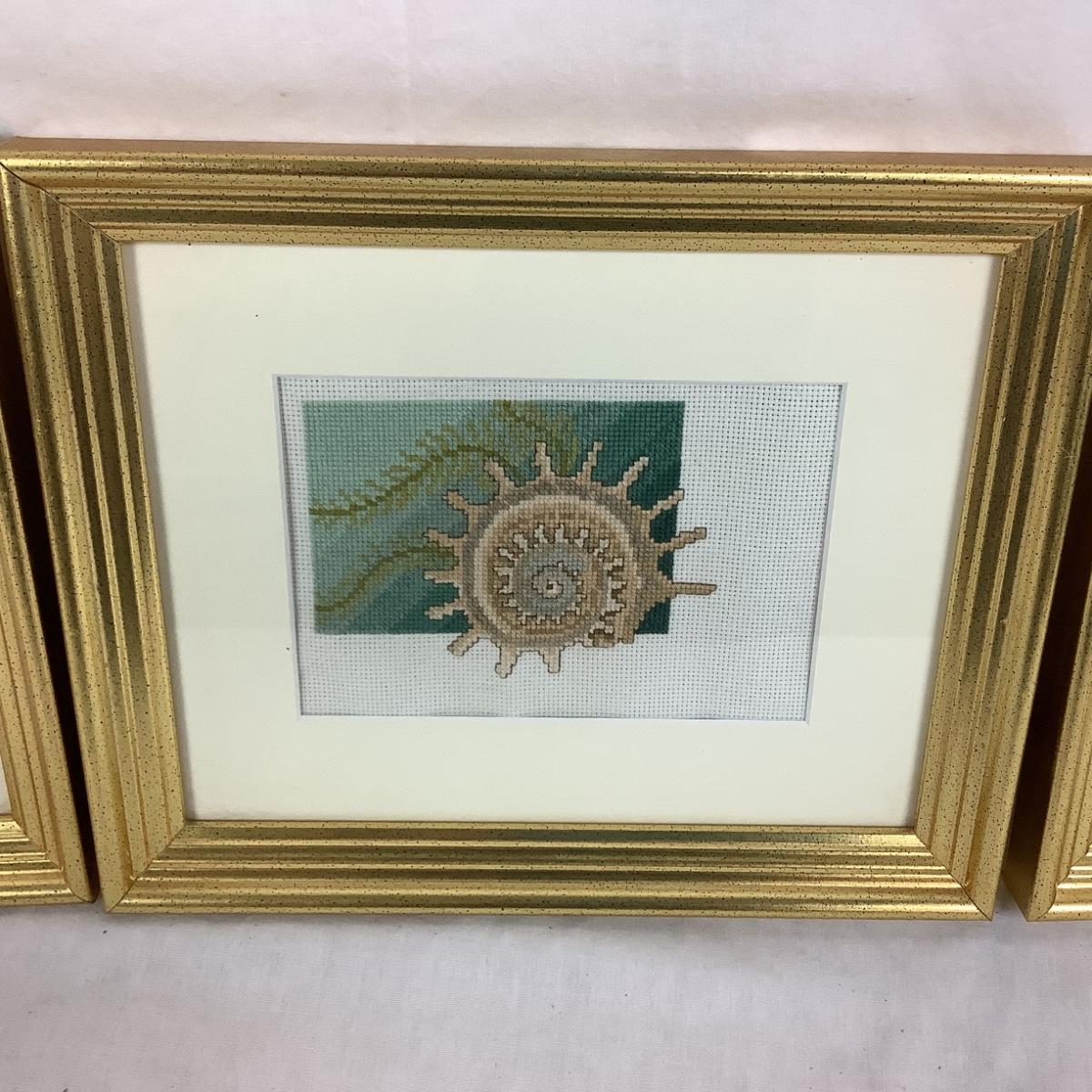 965 Set of 4 Gold Framed Shell Designs Needlepoint Wall Art