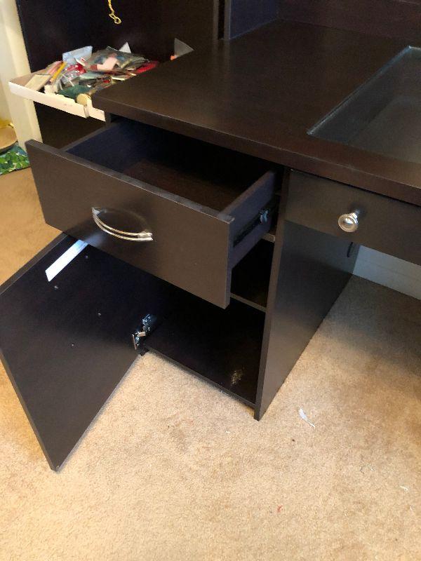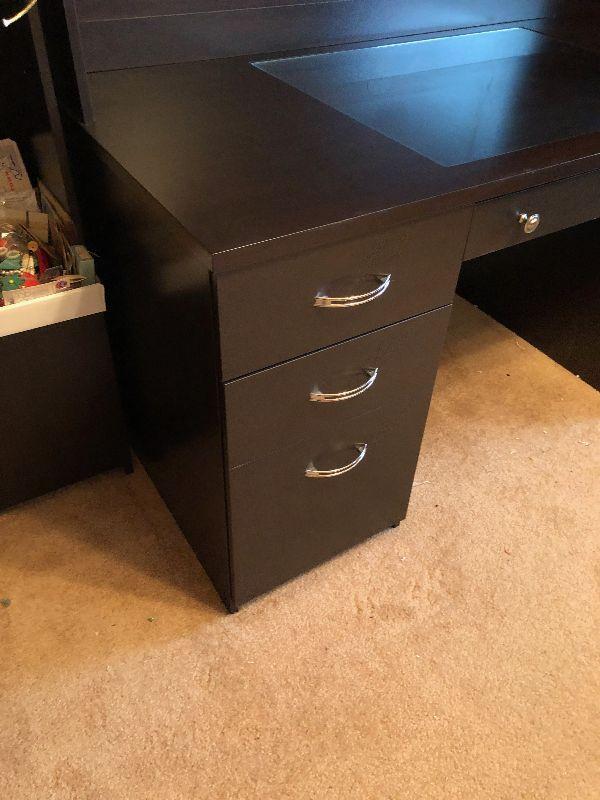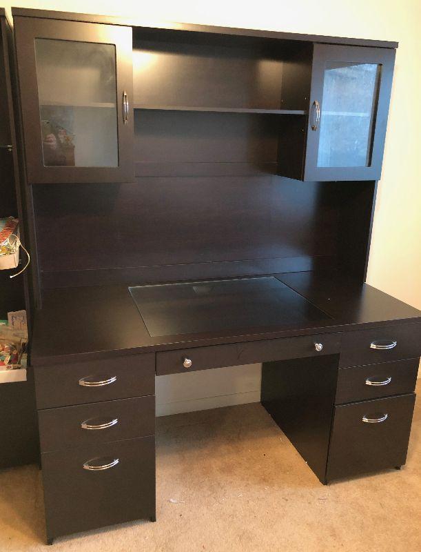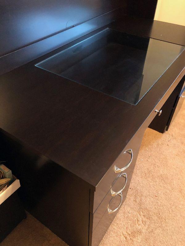 Ebony color faux wood desk 60x29, hutch portion 60 x 42 x 11