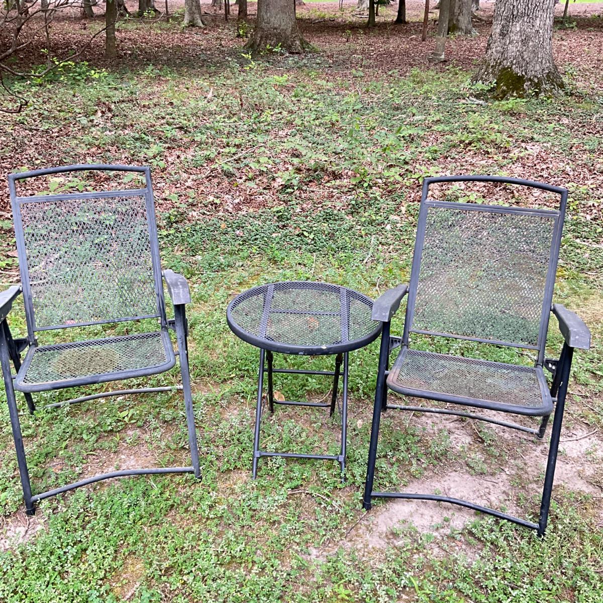 968 Black Metal Patio Chairs With Side Table