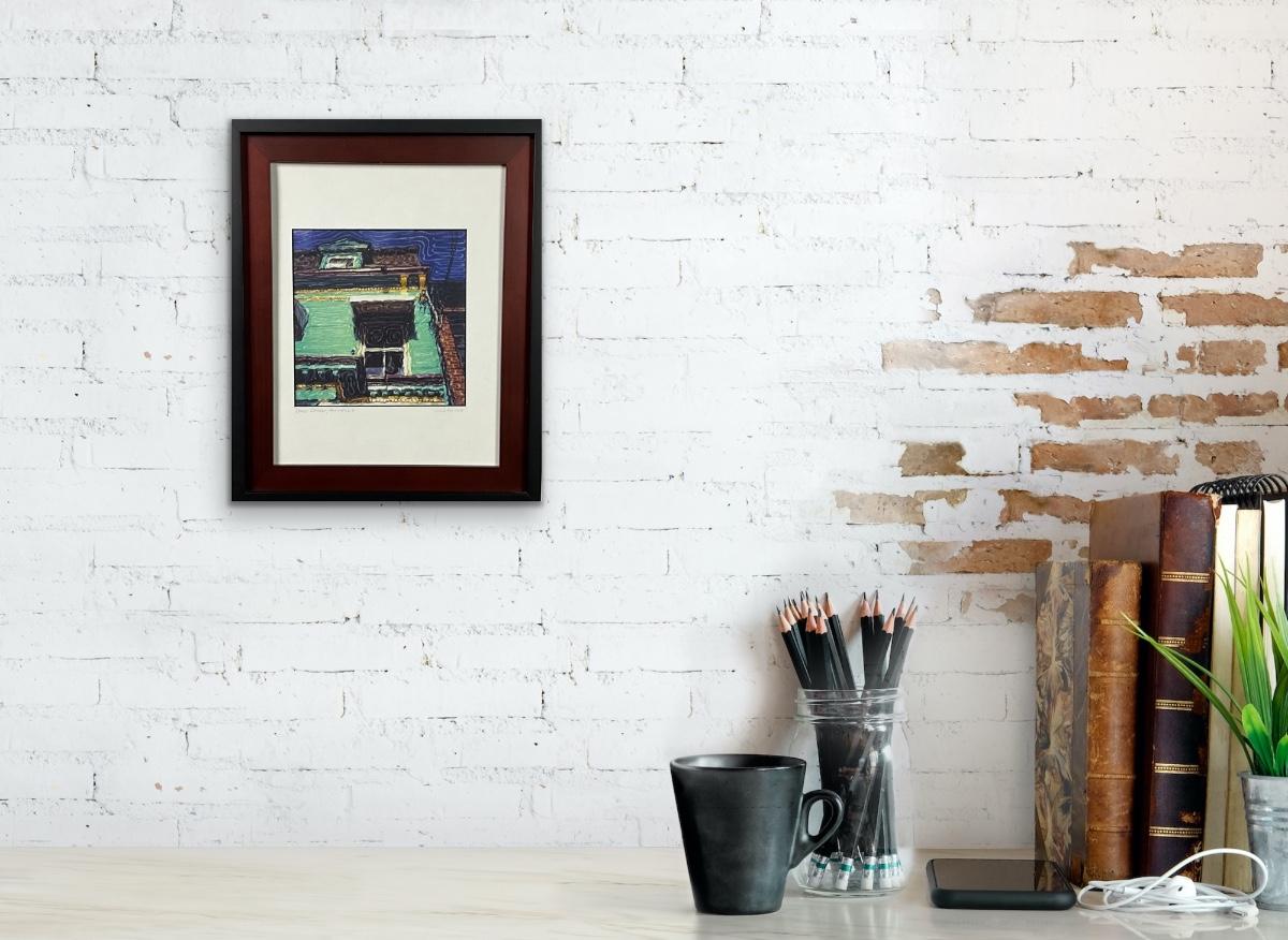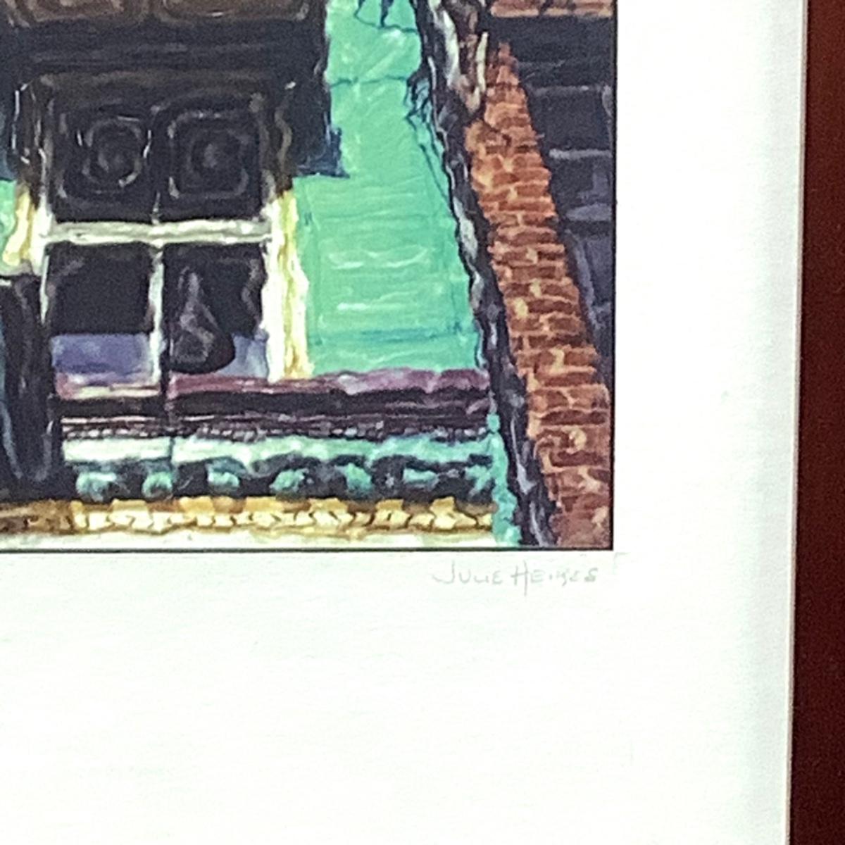 This print is by Julie Heikes and measures 13" wide x 16" high- framed