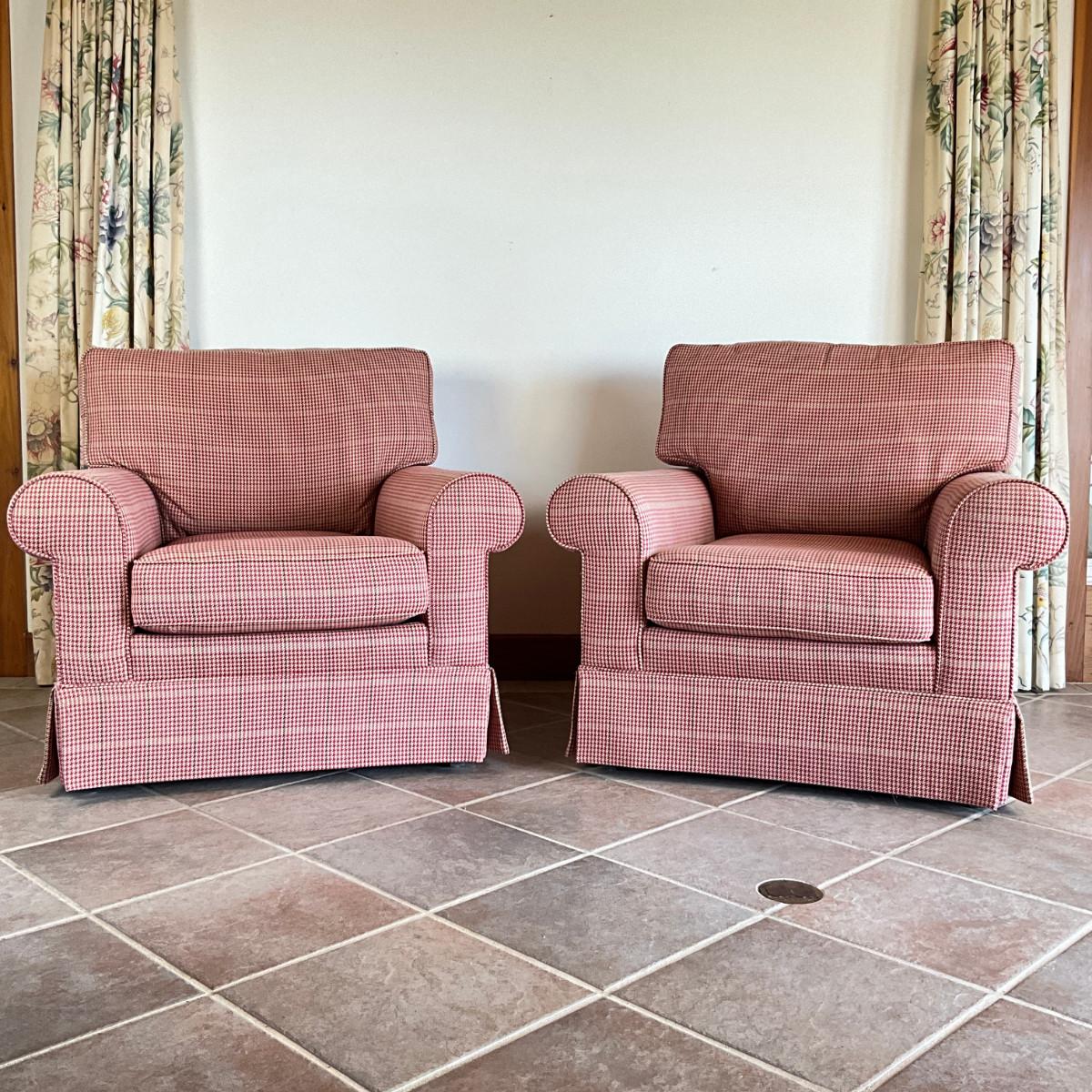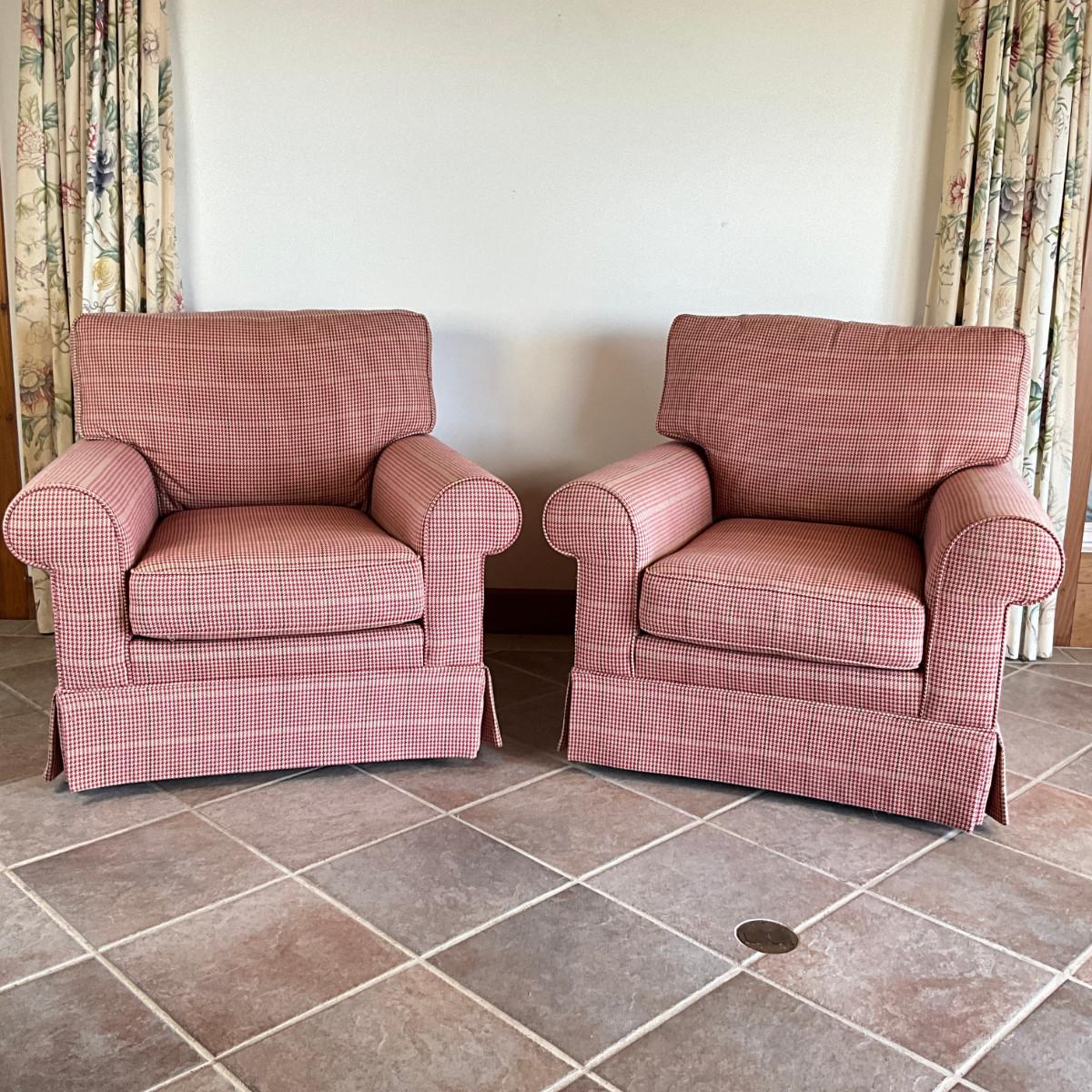969 Pair Of Sherill Furniture Co. Arm Chairs With Hounds Tooth Pattern (as-Is)