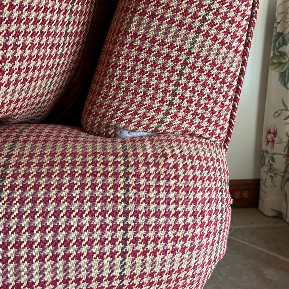 Back of both chairs are sun faded, one chair has small tear, see photos