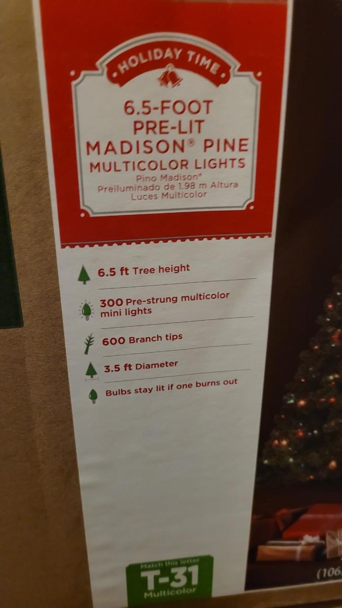 97: 6.5ft Pre-lite Madison Pine with Colored Lights