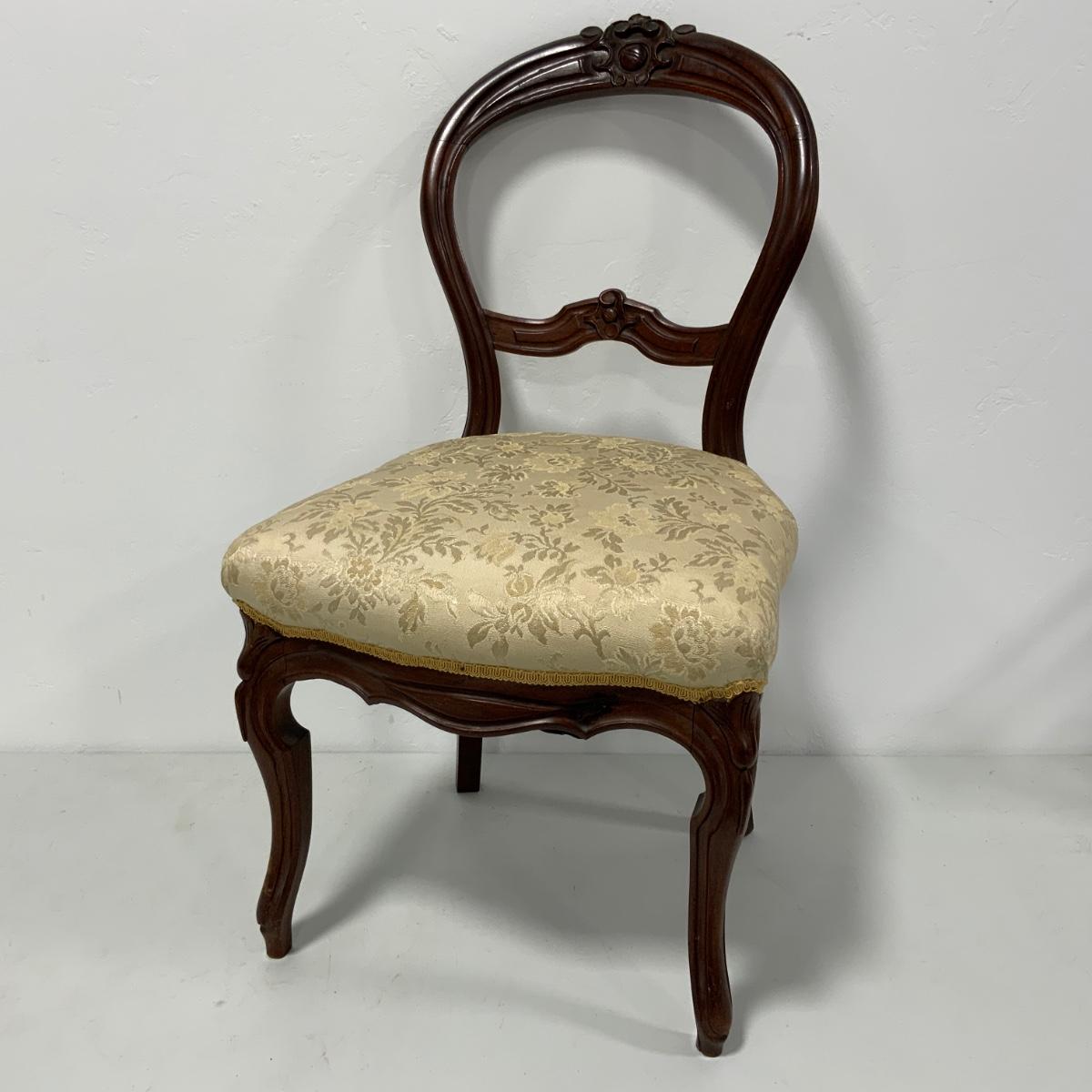 Beautiful Balloon Back Chair, crafted out of Carved Walnut, circa 1860. Chair measures 25” tall. Seat measures 19” x 18”. Please see photos for details and condition. ::: Shipping is NOT available on this lot. If you have any questions regarding this lot please contact the auctioneer either via this website, by direct email or by phone. PICK UP TIMES and other important information can be found in the TERMS and DESCRIPTION of the auction. Please take a look for pertinent information. Thanks!